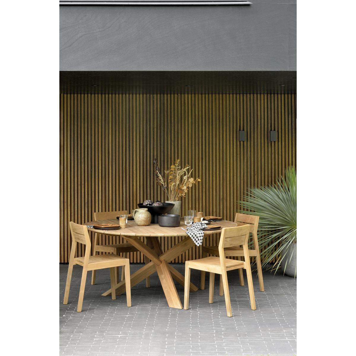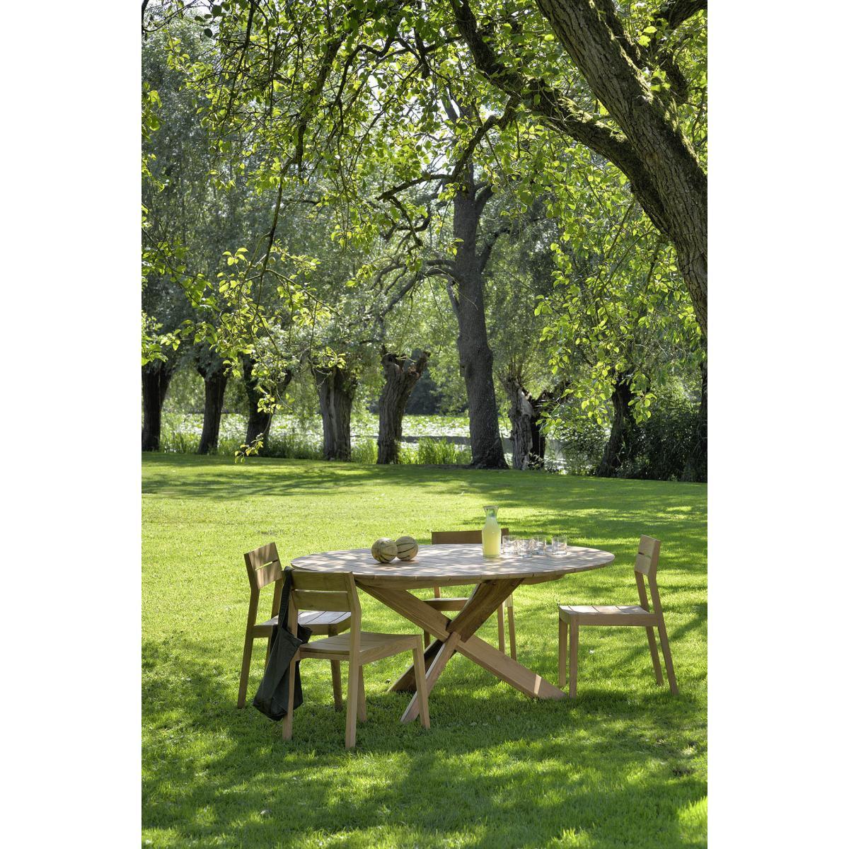 All the comfort and refinement of indoor furniture for your gardens and terraces. For twenty-five years, Belgian brand Ethnicraft has paid tribute to the beauty and authenticity of solid wood. Timeless, extremely strong and durable, these are quality pieces of furniture that age wonderfully and are passed down from generation to generation. Handcrafted, Ethnicraft furniture is the result of exceptional know-how. Behind the apparent simplicity of the design hides a constant search for innovation. Integrating advanced techniques into the creative process, each new design is worked out down to the smallest detail. The Circle table by designer Alain Van Havre stands out for its astonishing sculptural base with oblique lines, which is the result of a long search for dynamic balance. The three thick, solid legs cross and intertwine in perfect balance. They form a graphic, symmetrical assembly of extreme stability. The Circle table will become the centrepiece of your living room, terrace or garden. The solid teak has not undergone any protective treatment. The wood is simply polished, allowing the natural oils to rise to the surface. The high density of teak wood makes it an excellent choice for outdoor use. Ethnicraft works closely with the Indonesian government agency responsible for managing the teak plantations originally established by the Dutch 150 years ago. Ethnicraft’s solid teak furniture is made in Indonesia. By deciding to set up its factory in Indonesia, Ethnicraft limits on the one hand the unnecessary transport of goods and therefore all the ecological damage that results from it, and on the other hand supports the people and the local economy by creating opportunities for employment and education, as well as job security. In addition, working with local populations, who are generally little informed about sustainable development, allows them to share these values and educates them so that they become aware of the issues in their everyday life.