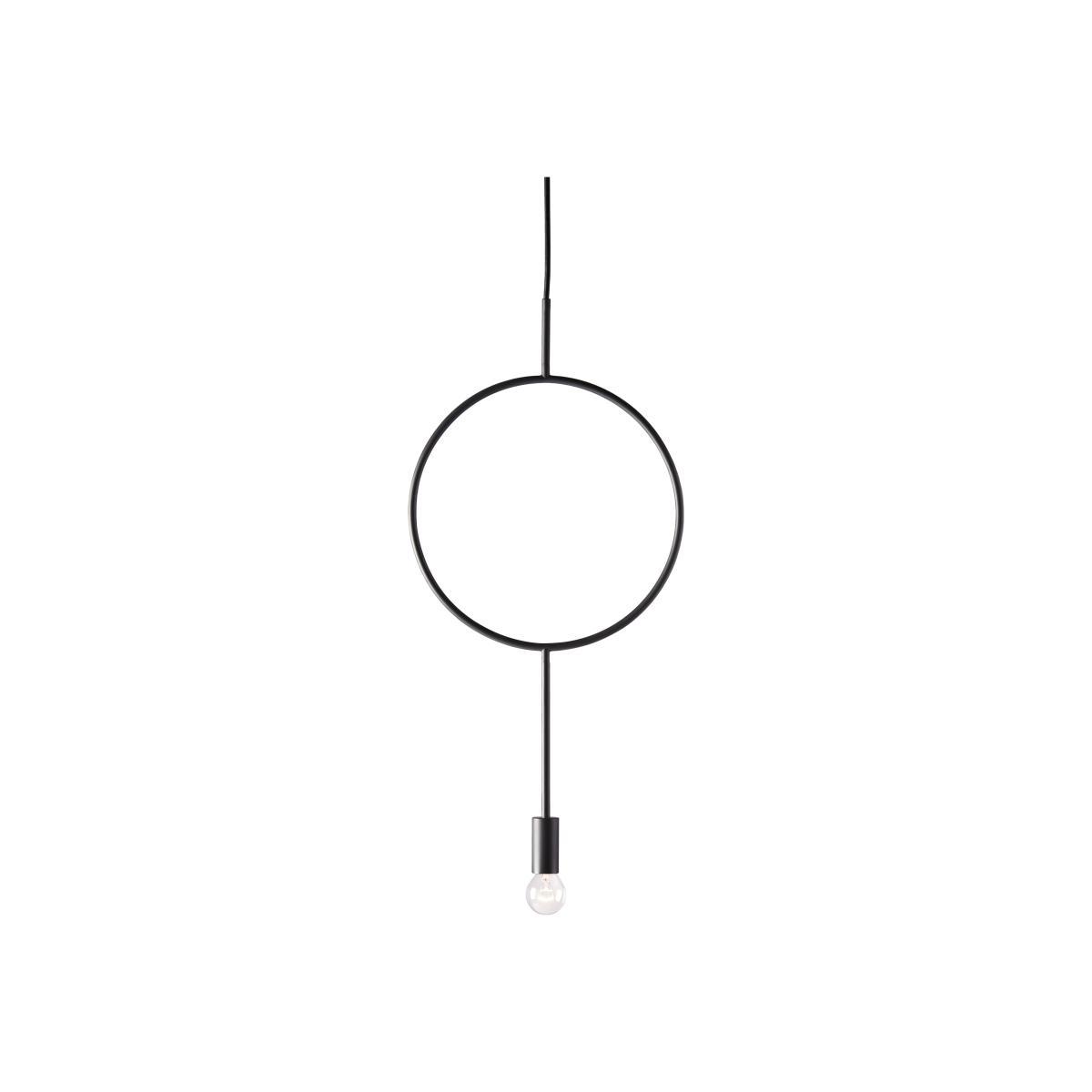The Circle pendant is a perfect demonstration of stunning geometric minimalism. Its flat volume floats in the air, like a piece of jewellery. The steel ring serves as a stylish frame for the bulb, which balances like an acrobat from its end. A sculptural and sophisticated light construction. You can use any decorative bulb of your choice (E14 cap): a classic bulb with a filament, an oversized or metallic globe. Get creative!.