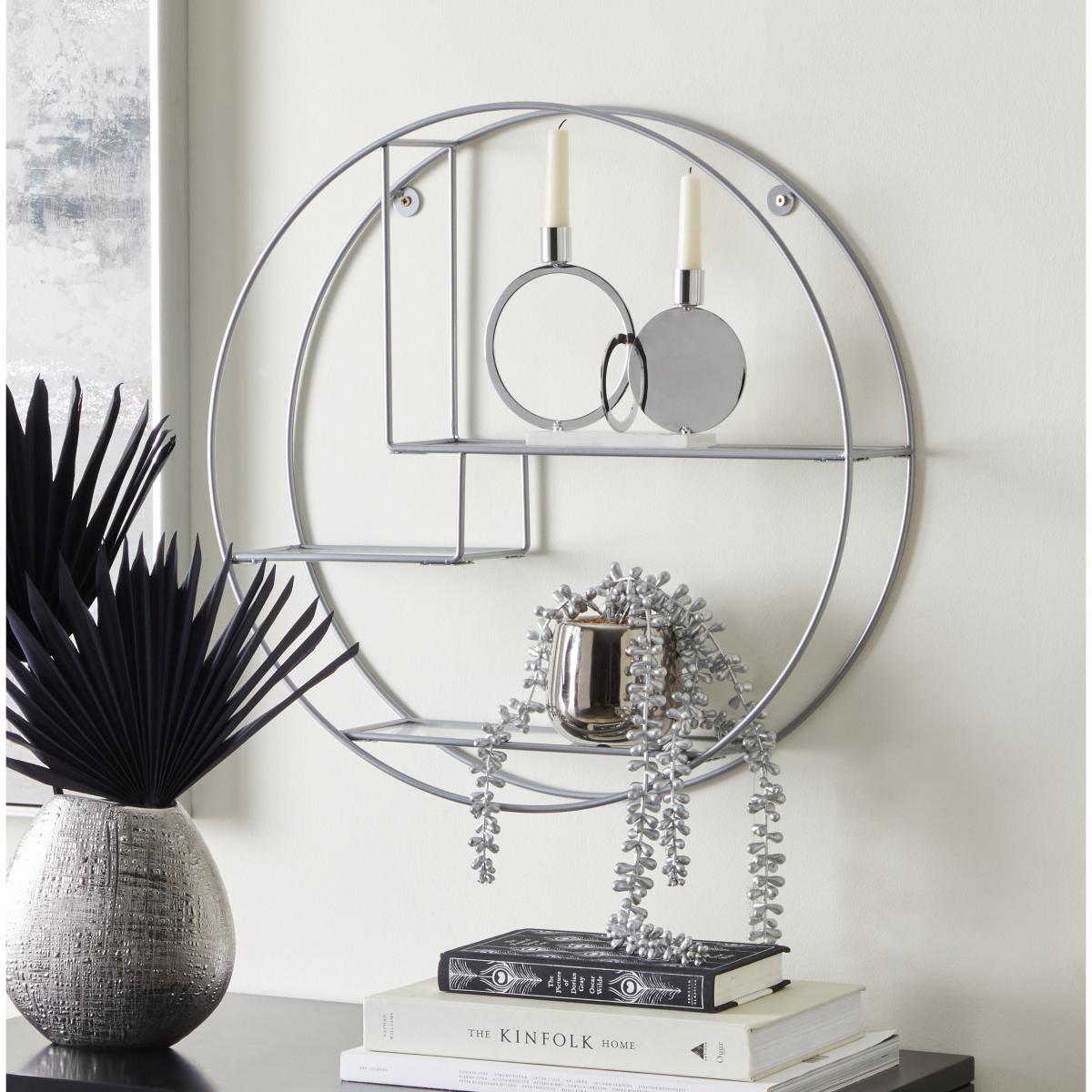 Wall art meets function with this Circle Shelf, the silver frame and mirrored shelves create a stylish and perfect way to display your trinkets and more - all while adding sophistication to your space.