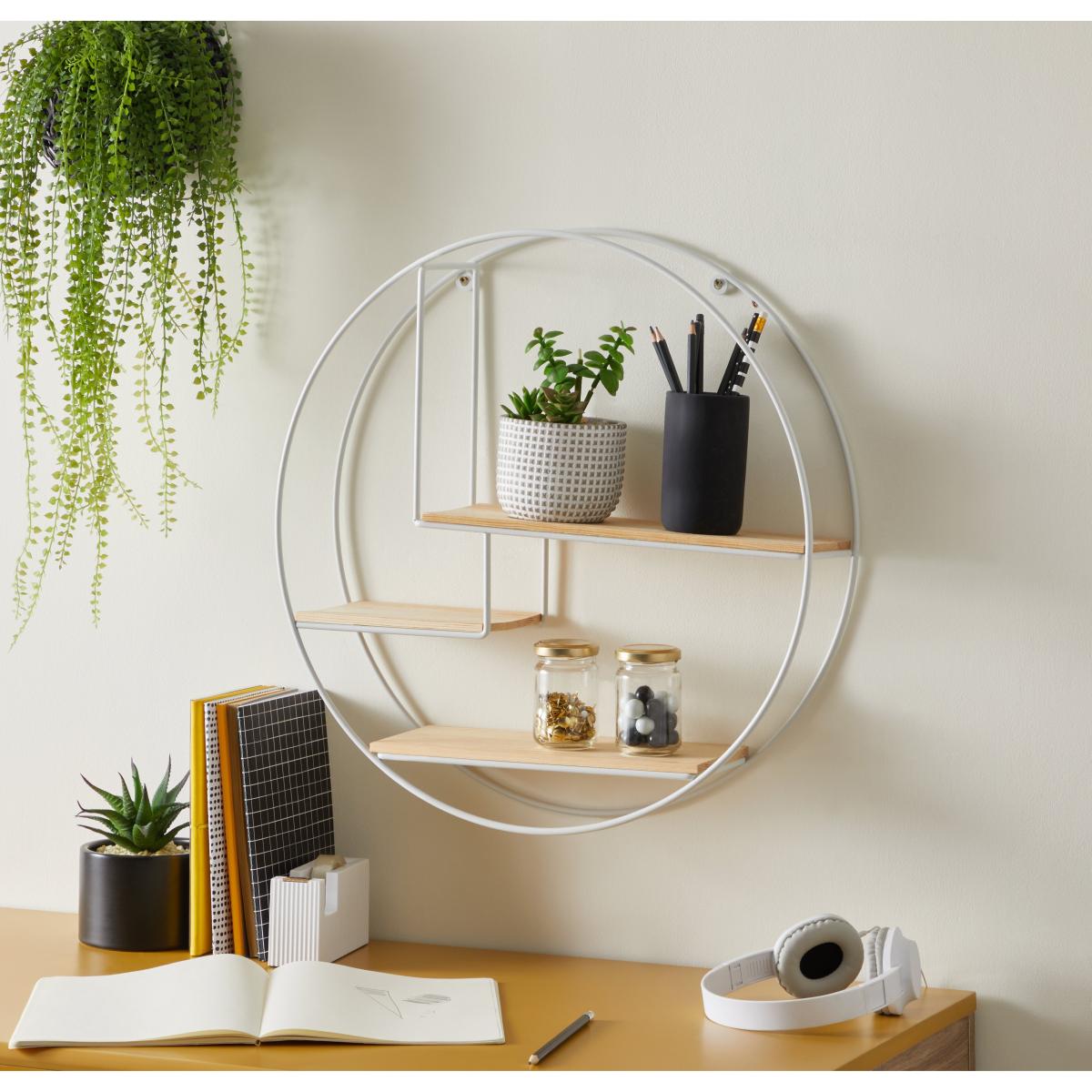 Wall art meets function with this Circle Shelf, the white frame and natural pine shelves create a stylish and perfect way to display your trinkets and more - all while adding sophistication to your space.