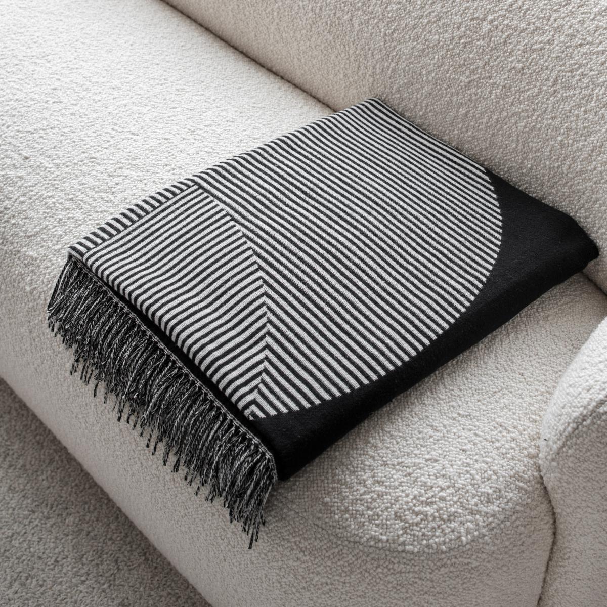 I love how this throw adds a modern touch with its bold black design on a neutral base, making it versatile for various interiors. It works particularly well in contemporary or minimalist spaces, where its graphic pattern can serve as a statement piece. For styling, drape it over a sofa or armchair for a relaxed, effortless look, or fold it neatly at the foot of a bed for a touch of pattern without overwhelming the room. Since it’s cotton, it’s practical and easy to care for, adding both comfort and style to everyday living spaces.