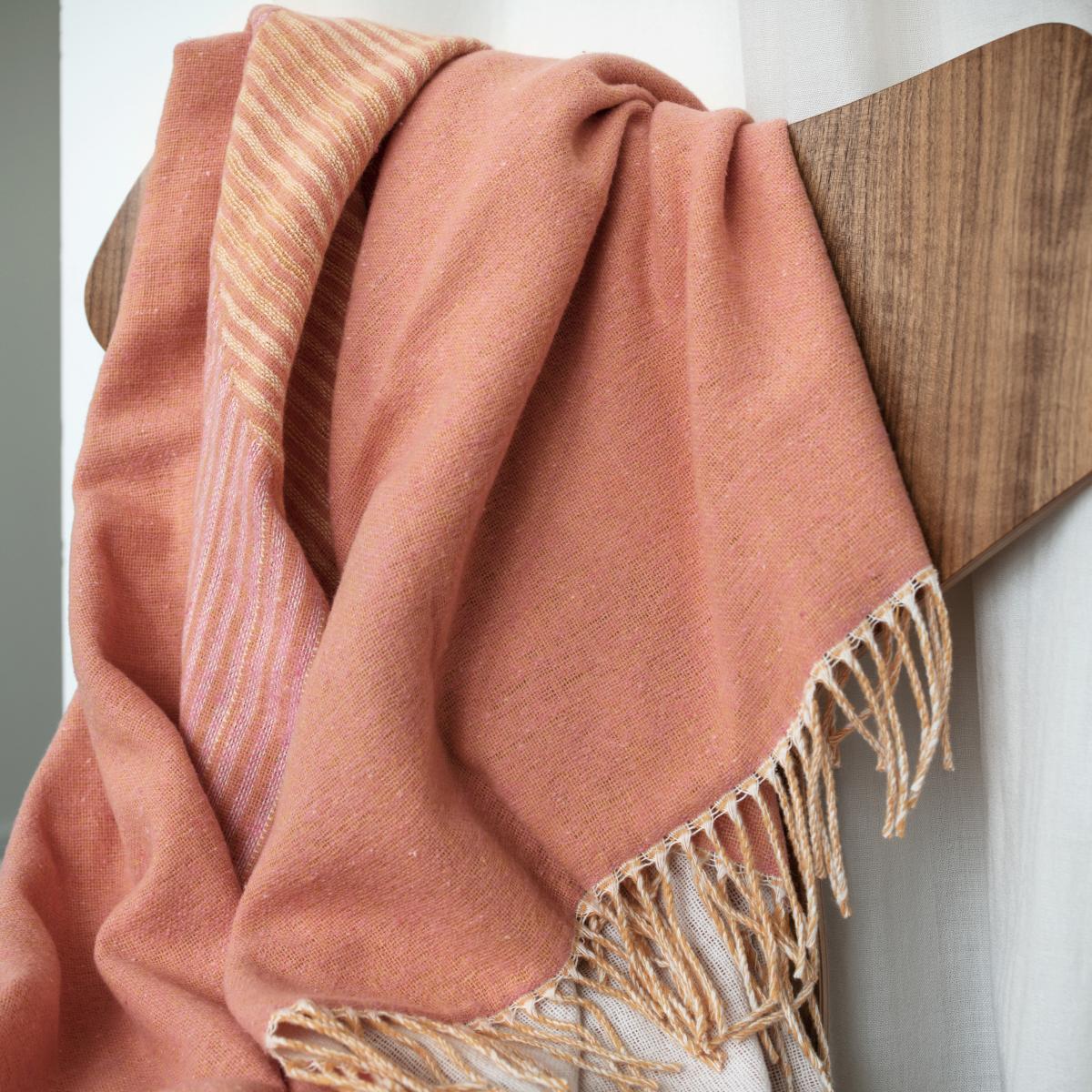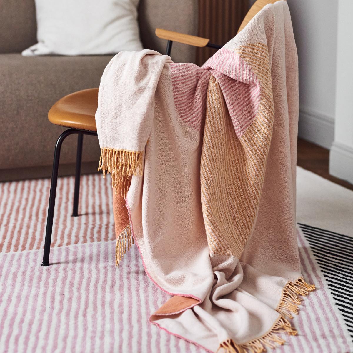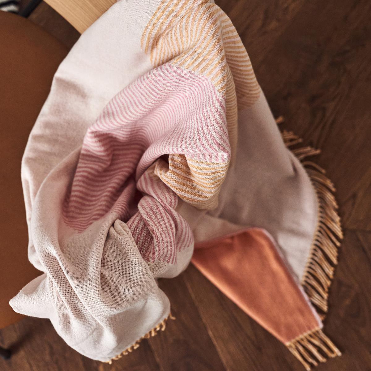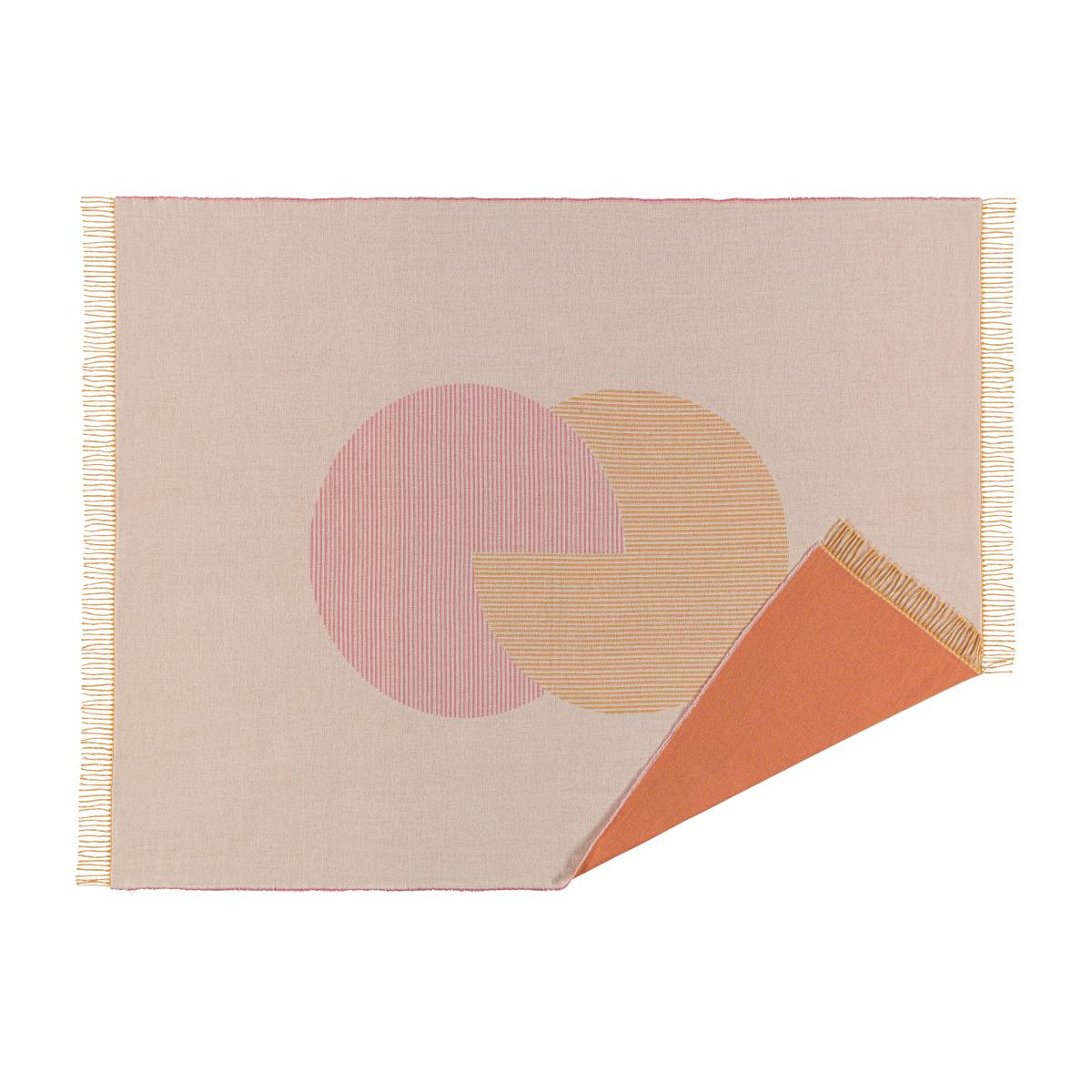 The Circles cotton throw by the Swedish brand NJRD is a jacquard-woven throw made of recycled cotton with a monochrome pattern of two partially overlapping circles. Jacquard-weaving is a particular technique that results in the same pattern with inverted colours on the other side of the throw, meaning that you can easily switch up the look by simply turning the throw over.