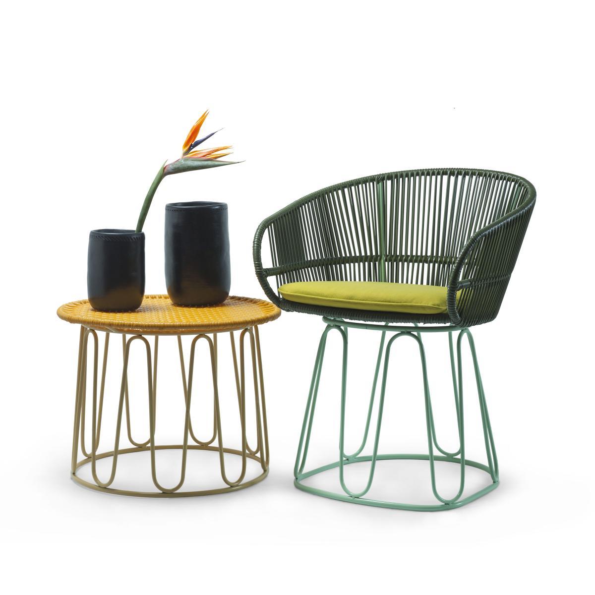 A multicultural and ethnic design, enlivened by flashy, colours, contemporary and joyful. The German designer, Sebastian Herkner, has created a colourful furniture collection, inspired by the creative language of South America. The Circo collection is made completely by hand in Santa Marta, on the Caribbean coast in Colombia. Rafael and his friends weave the threads of recycled plastic by hand according to a traditional technique from their region called "Momposino". The combinations of light, fresh colours are inspired by the liveliness of the Caribbean coast. The fine steel structure displays undulating and sinuous lines. The result is staggering: this collection is at once exuberant, rich in humanity, modern, colourful and full of vitality. A treat for the eyes and an invitation to travel. This creation exudes tradition and modernity, innovation and history, form and beauty all at once. The Circo collection comes from the Sala project, born out of a journey to Colombia taken by designer Sebastian Herkner. Concerned with bringing originality and authenticity to his creations, he met local craftspeople who have managed to preserve and pass on real expertise and traditional production methods over the centuries. PLEASE NOTE. The seat cushion visible in the picture is not supplied: cushion sold separately (please contact us).