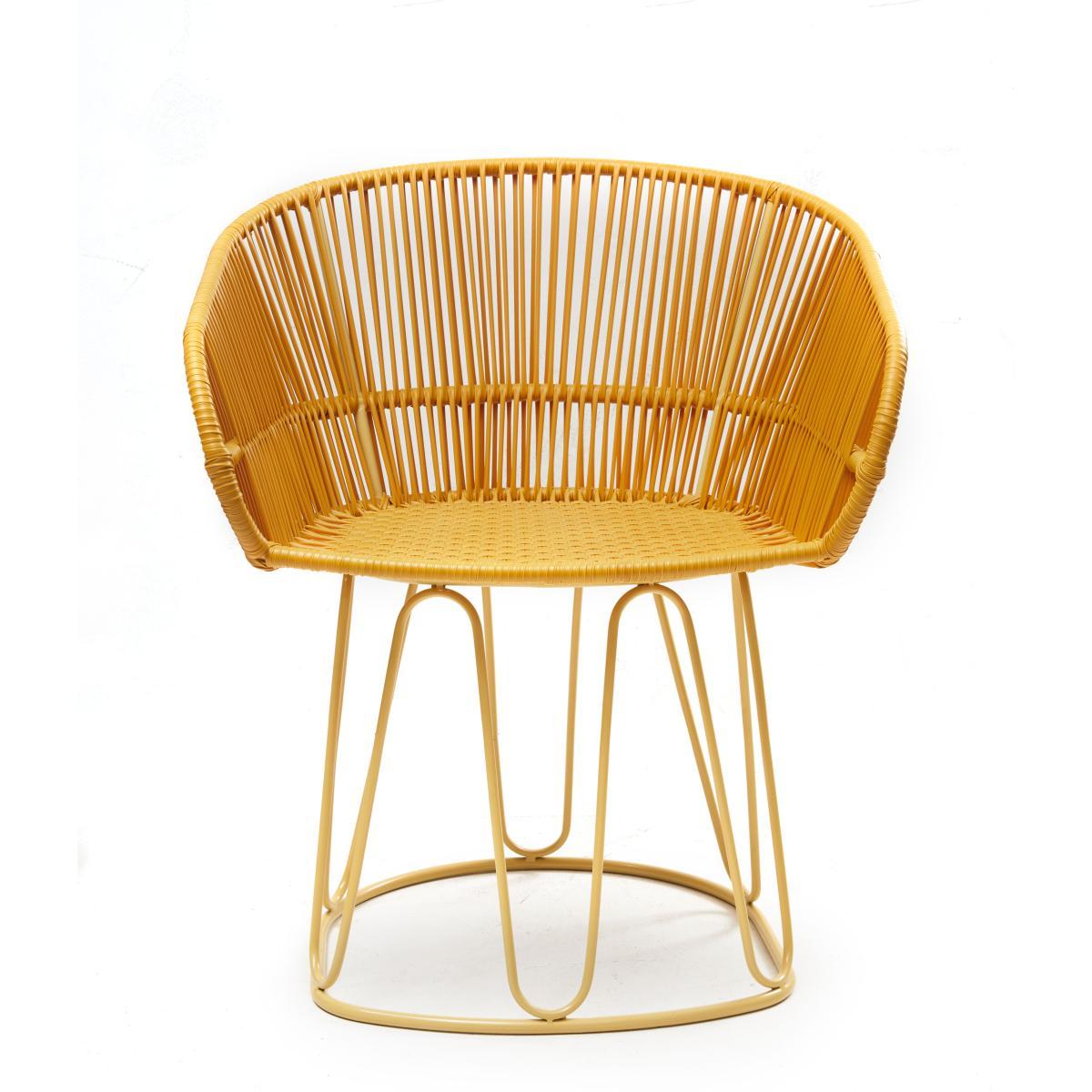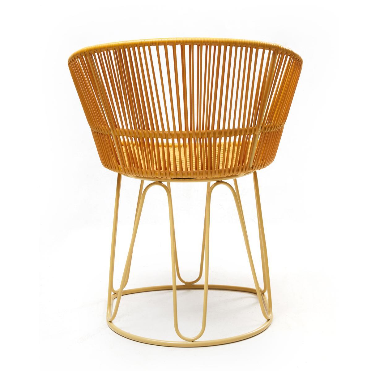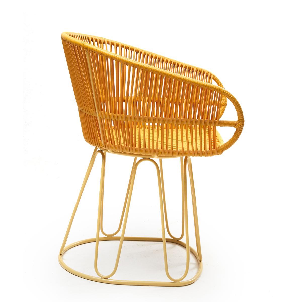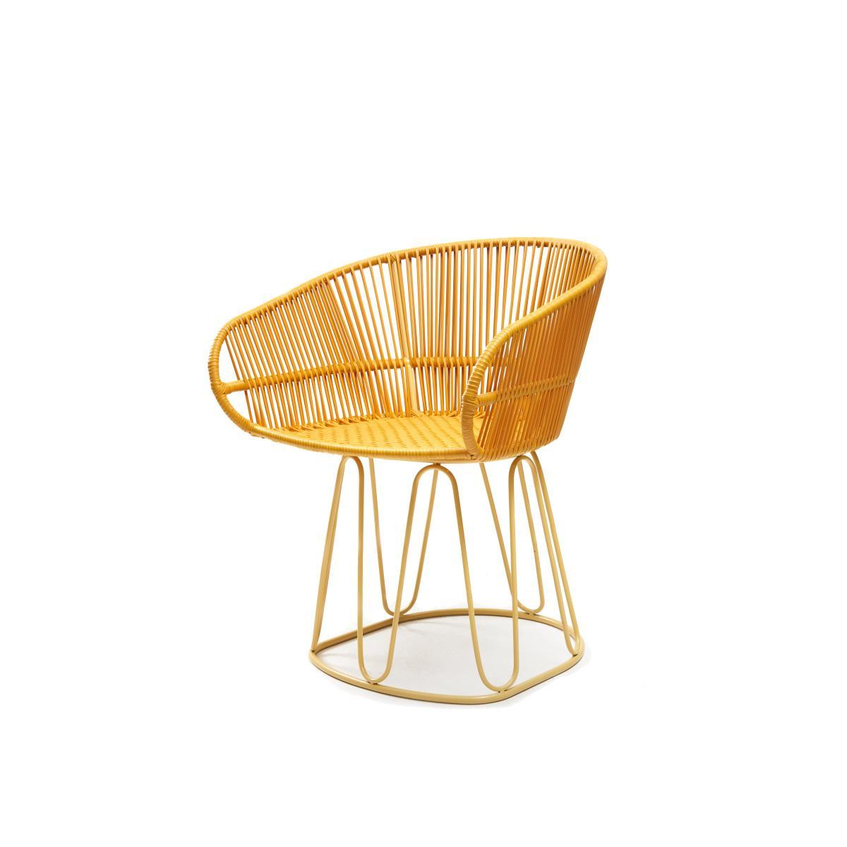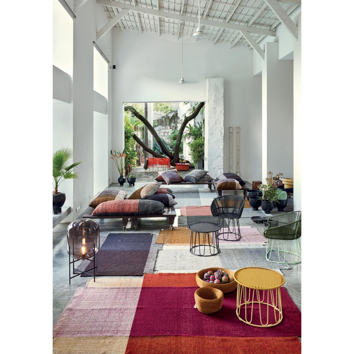 A multicultural and ethnic design, enlivened by flashy, colours, contemporary and joyful. The German designer, Sebastian Herkner, has created a colourful furniture collection, inspired by the creative language of South America. The Circo collection is made completely by hand in Santa Marta, on the Caribbean coast in Colombia. Rafael and his friends weave the threads of recycled plastic by hand according to a traditional technique from their region called "Momposino". The combinations of light, fresh colours are inspired by the liveliness of the Caribbean coast. The fine steel structure displays undulating and sinuous lines. The result is staggering: this collection is at once exuberant, rich in humanity, modern, colourful and full of vitality. A treat for the eyes and an invitation to travel. This creation exudes tradition and modernity, innovation and history, form and beauty all at once. The Circo collection comes from the Sala project, born out of a journey to Colombia taken by designer Sebastian Herkner. Concerned with bringing originality and authenticity to his creations, he met local craftspeople who have managed to preserve and pass on real expertise and traditional production methods over the centuries. PLEASE NOTE. The seat cushion visible in the picture is not included: cushion sold separately (contact us to order).