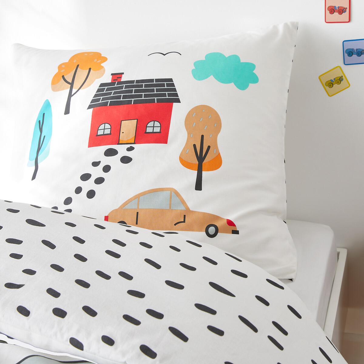 Vroom Vroom! On the road to dreamland, with this colourful and playful Circuit duvet cover set. A design exclusive to La Redoute Interiors. Cotton is part of our daily lives. We love it for its suppleness and softness. Easy Care, it is ideal for the beds of young and old alike!Product Details • 100% cotton • 144 thread count • Block circuit print on the front, mini prints on the back • Straight buttoned hem. As the seasons change, add your own personal touch by mixing the Circuit set with our range of plain Scenario bed linen. Care Advice • Machine washable at 60°C • By washing your laundry at 40°C instead of 60°C, you limit energy consumption. Dimensions • Duvet cover 140 x 200cm + 1 rectangular pillowcase 50 x 70cm : Single • OEKO-TEX® Standard 100. Standard 100 certification by OEKO-TEX® tests textile products for harmful substances via an independent, international label.