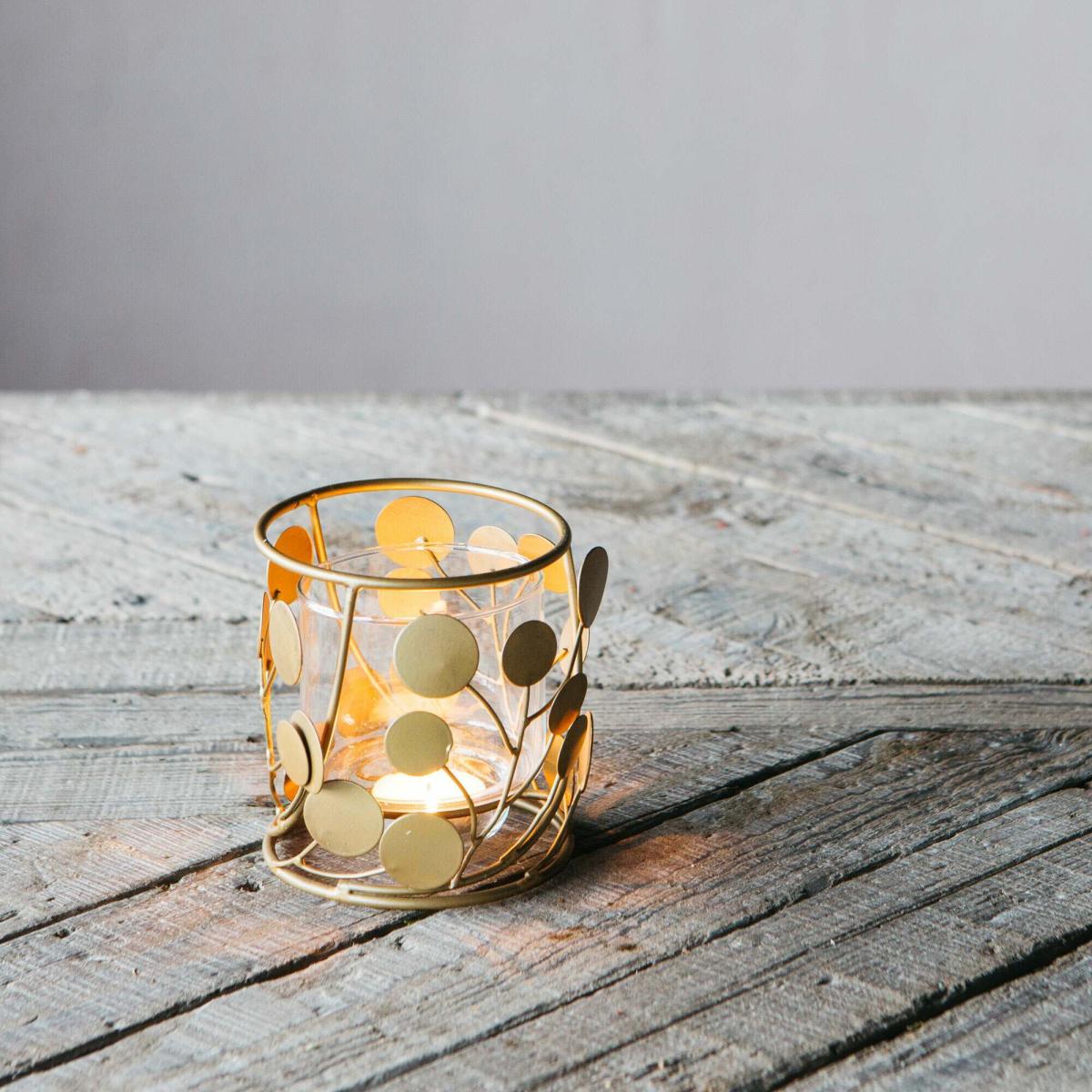 I love this tea light holder for its blend of contemporary and vintage appeal. The brass finish adds a touch of warmth and sophistication, while the glass dotted design lends a playful yet elegant vibe. It works especially well in eclectic interiors, modern rustic spaces, or somewhere you want to introduce a bit of understated glamour. For practical styling, consider grouping a few on a wooden tray with other textured candlesticks or mix it with greenery for a fresh contrast. It’s perfect on coffee tables, sideboards, or even outdoor patio settings, bringing a cosy glow to any space without overwhelming it.