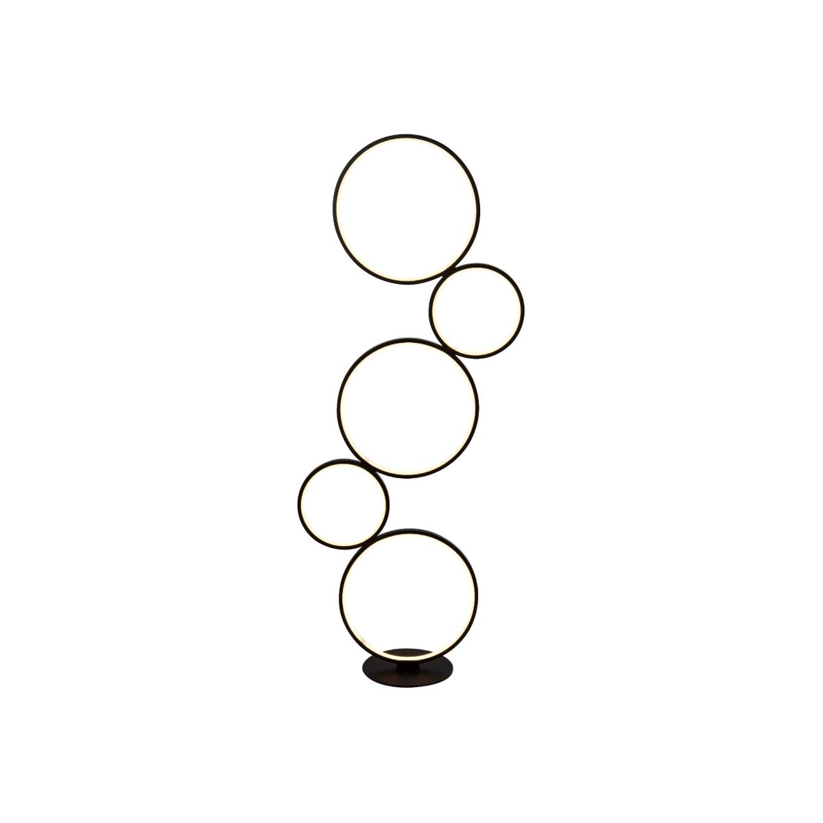 Contemporary LED 5 light floor lamp boasting matt black finish Modern and futuristic in design, the Cirque floor lamp is a contemporary lamp. Featuring 5 hoops, a matt black finish and illuminated inner bands. The LED technology gives off a warm white glow, perfect for use in bedrooms, lounges and hallways.        Contemporary LED 5 light floor lamp boasting matt black finish Modern and futuristic in design, the Cirque floor lamp is a contemporary lamp. Featuring 5 hoops, a matt black finish and illuminated inner bands. The LED technology gives off a warm white glow, perfect for use in bedrooms, lounges and hallways.