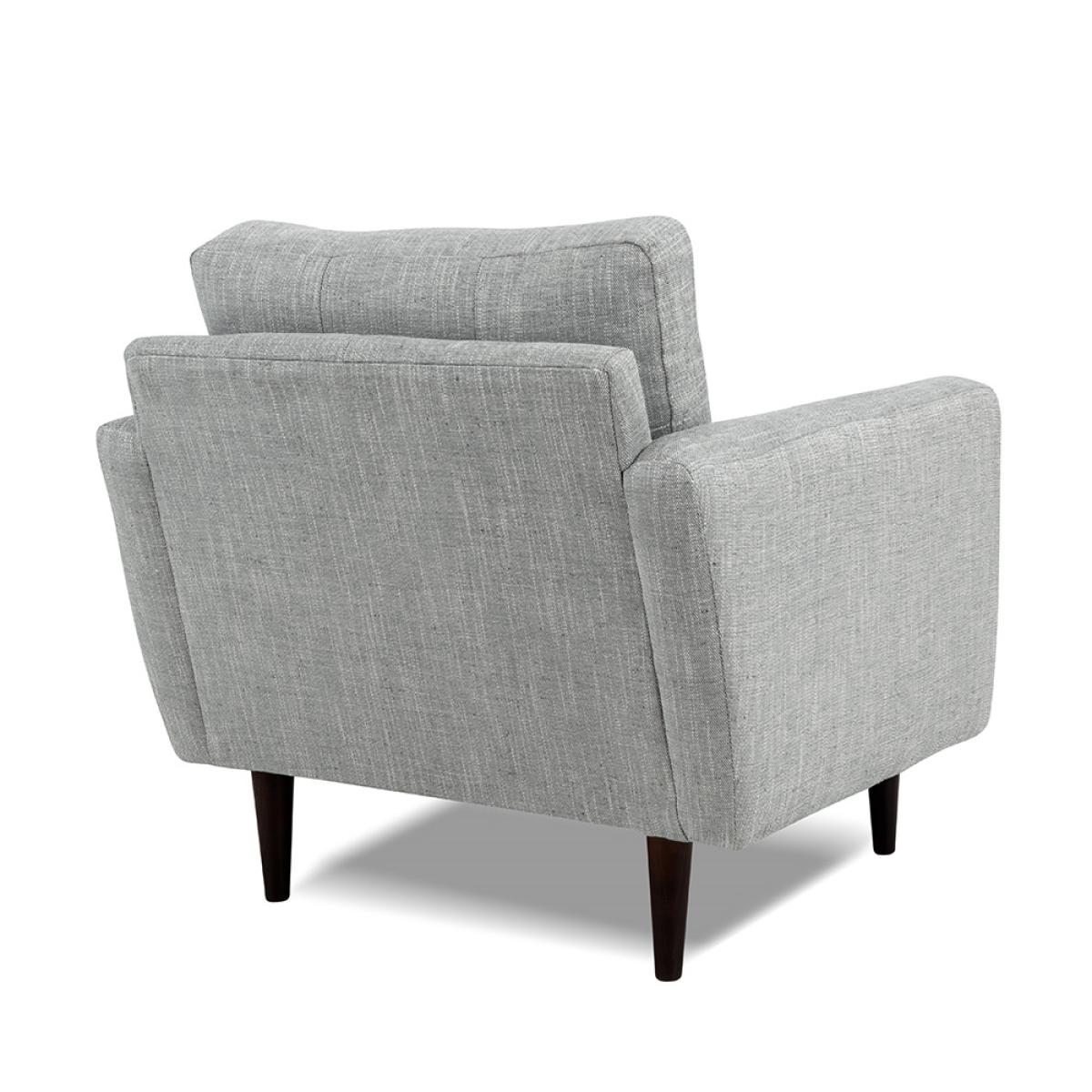Clean lines, crisp tailoring and comfortable cushions - the Cirrus Armchair is one sophisticated seat! Showcasing mid-century accents and paired with a modern design, the Cirrus Armchair will make a statement in your chosen space. Admire those tapered, solid wood legs, the gently angled seat back and tufted fibre filled cushions - don't these details just make you want to pop the kettle on and grab a book. Indulge the designer in you and setup a reading nook in your home office or create a chic arrangement in the living room with the coordinating Cirrus sofas and footstools. Upholster your accent chair with a choice of luxurious textured fabrics and select a colour that showcases your personal style.