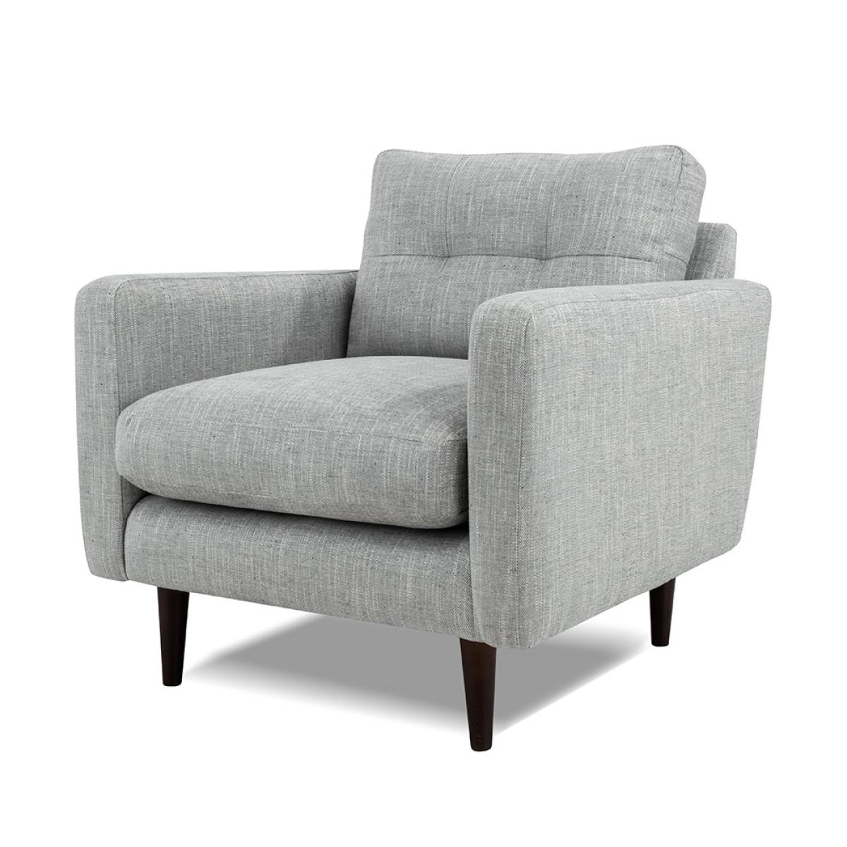 Clean lines, crisp tailoring and comfortable cushions - the Cirrus Armchair is one sophisticated seat! Showcasing mid-century accents and paired with a modern design, the Cirrus Armchair will make a statement in your chosen space. Admire those tapered, solid wood legs, the gently angled seat back and tufted fibre filled cushions - don't these details just make you want to pop the kettle on and grab a book. Indulge the designer in you and setup a reading nook in your home office or create a chic arrangement in the living room with the coordinating Cirrus sofas and footstools. Upholster your accent chair with a choice of luxurious textured fabrics and select a colour that showcases your personal style.
