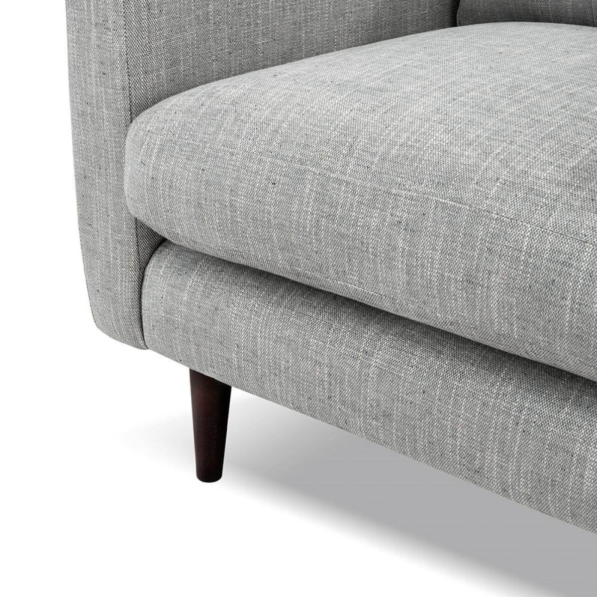 Clean lines, crisp tailoring and comfortable cushions - the Cirrus Armchair is one sophisticated seat! Showcasing mid-century accents and paired with a modern design, the Cirrus Armchair will make a statement in your chosen space. Admire those tapered, solid wood legs, the gently angled seat back and tufted fibre filled cushions - don't these details just make you want to pop the kettle on and grab a book. Indulge the designer in you and setup a reading nook in your home office or create a chic arrangement in the living room with the coordinating Cirrus sofas and footstools. Upholster your accent chair with a choice of luxurious textured fabrics and select a colour that showcases your personal style.