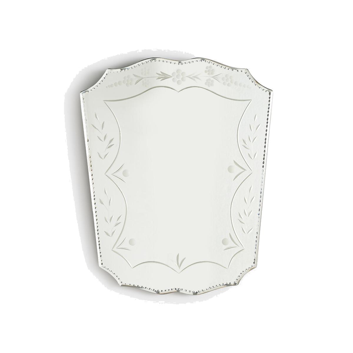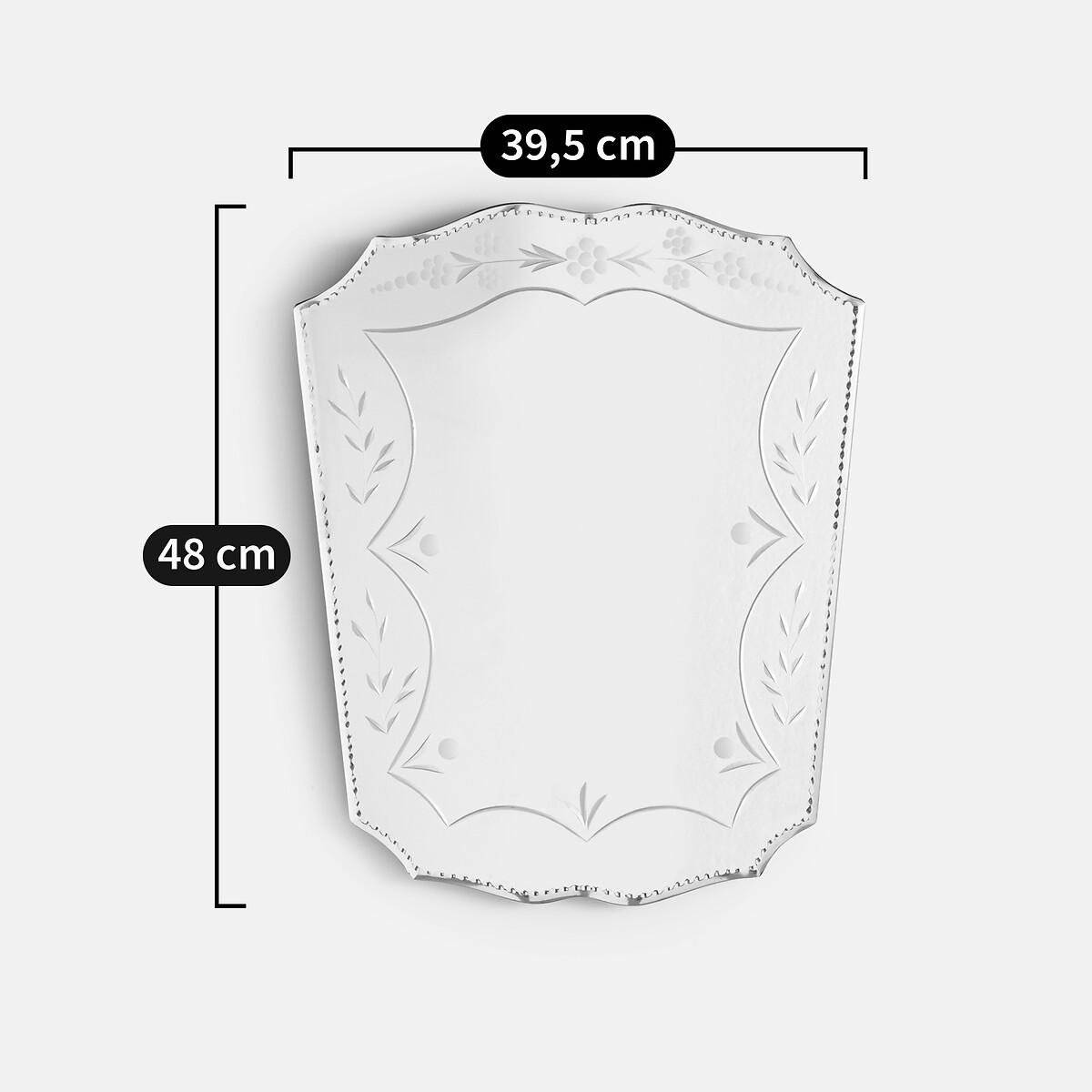 Old-world elegance and precious reflections: this vintage-style Venetian mirror in bevelled glass will add charm and character to your decor. Ideal for a touch of retro chic in every room of the house. Product Details • In glass and MDF • Wall fixing (screws and plugs not supplied)Dimensions • Length: 39.5cm • Height: 48cm • Thickness: 1.5cm/0.5"Dimensions and weight of parcel1 parcel • L57 x H11 x D47cm, 3.9kg