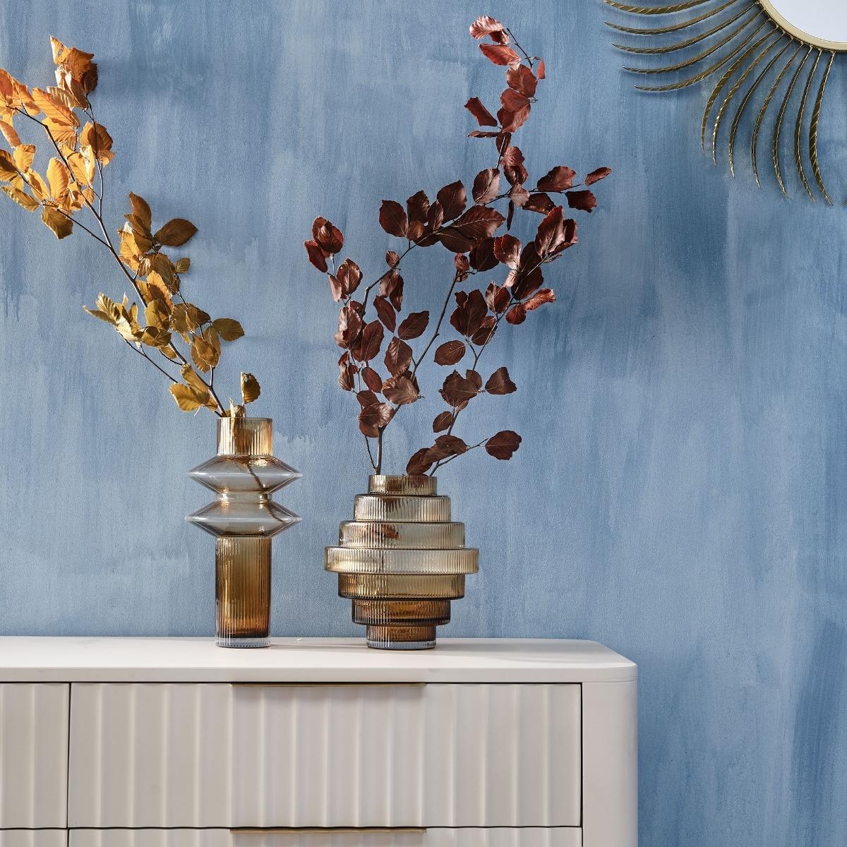 I love this citrine vase for its bold yet versatile design, making it a great statement piece for anything from modern to eclectic interiors. Its warm amber tones work beautifully with neutral colour schemes, adding a touch of colour without overpowering the space. I’d recommend using it with a simple bouquet of dried or fresh greenery for a relaxed, curated look, or as a standalone decorative object on sideboards or shelves. Practical styling tips include pairing it with other textured materials or metallic accents to enhance its contemporary vibe, and keeping floral arrangements minimal to let the vase’s shape and colour shine. Overall, it's a functional piece that effortlessly elevates a variety of interior styles.