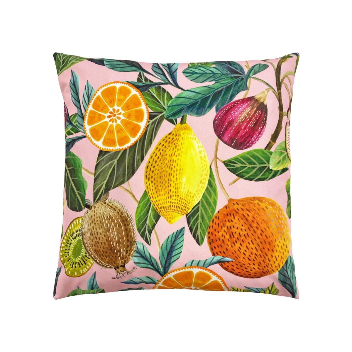 Featuring a vibrant abstract print of tropical Citrus fruit. Add a pop of colour to your garden this summer. Featuring a bold watercolour print of citrus fruits, this cushion is the perfect accompaniment for that outdoor experience.