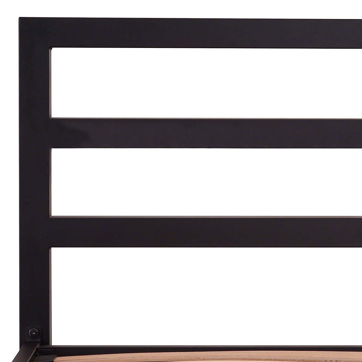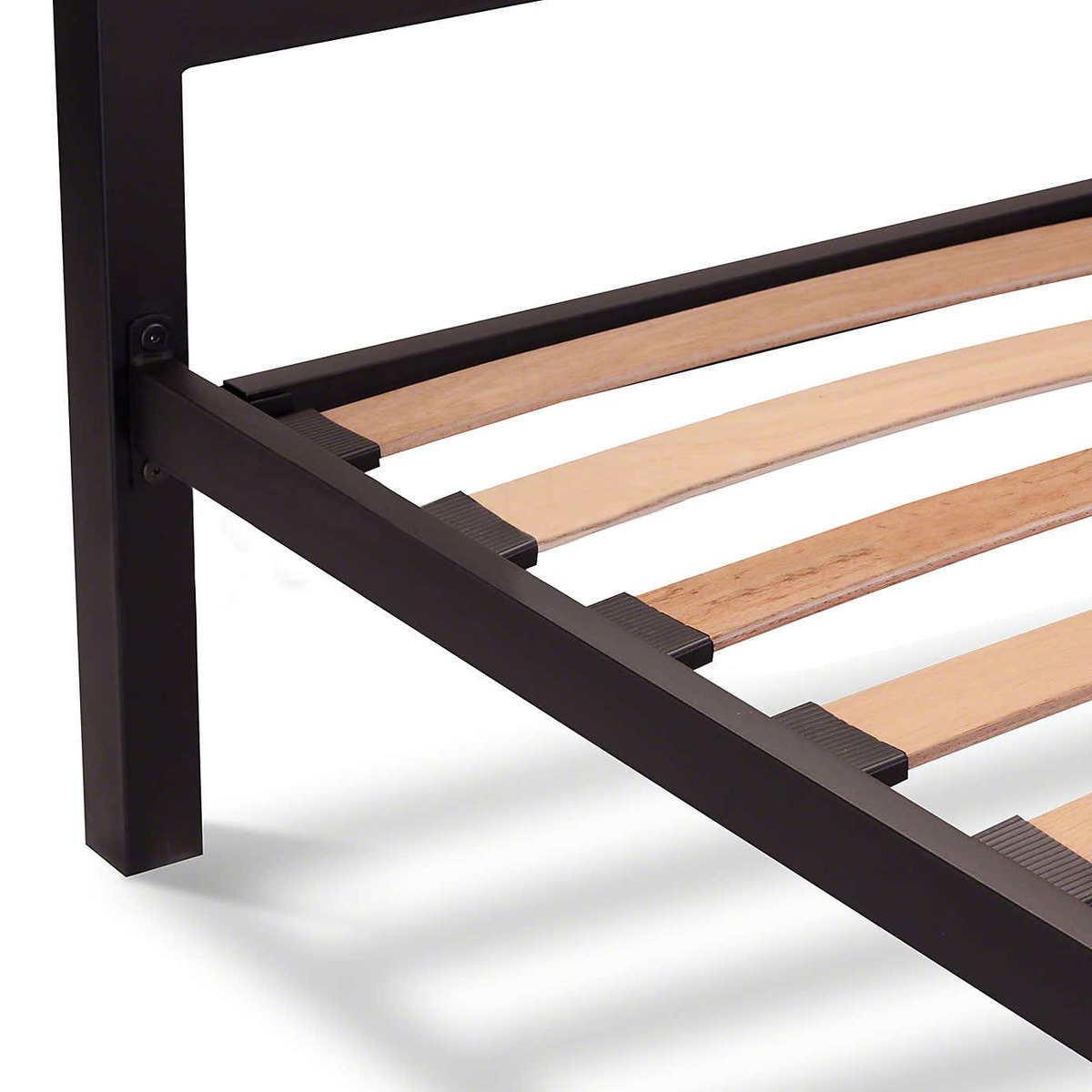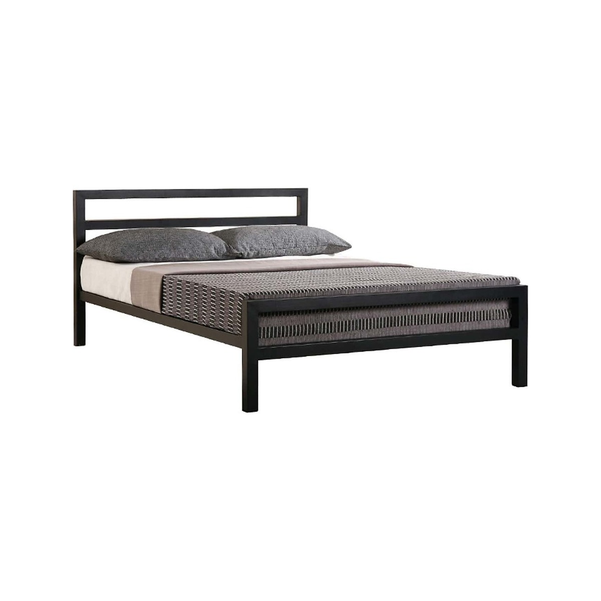 A modern metal bed frame featuring straight edges and a chunky design, finished in black.