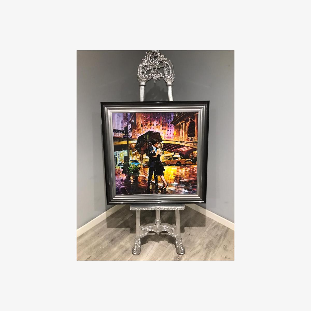 I love how this city scene really captures an urban vibe, making it a versatile piece for modern interiors. It works particularly well in living rooms, bedrooms, or even hallways where bold artwork can serve as a focal point. The large frame adds impact without overwhelming the space, so it pairs best with minimalist or contemporary decor. For practical styling, consider hanging it at eye level for maximum visual impact and pairing it with subtle accessories-like metallic or glass accents-to complement its sleek frame. This piece is an easy way to introduce a sense of energy and city life into your home.