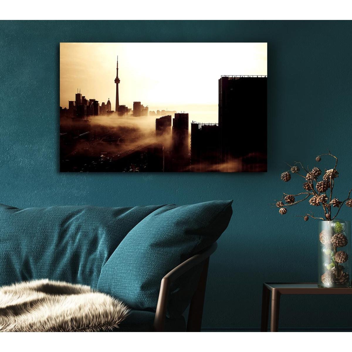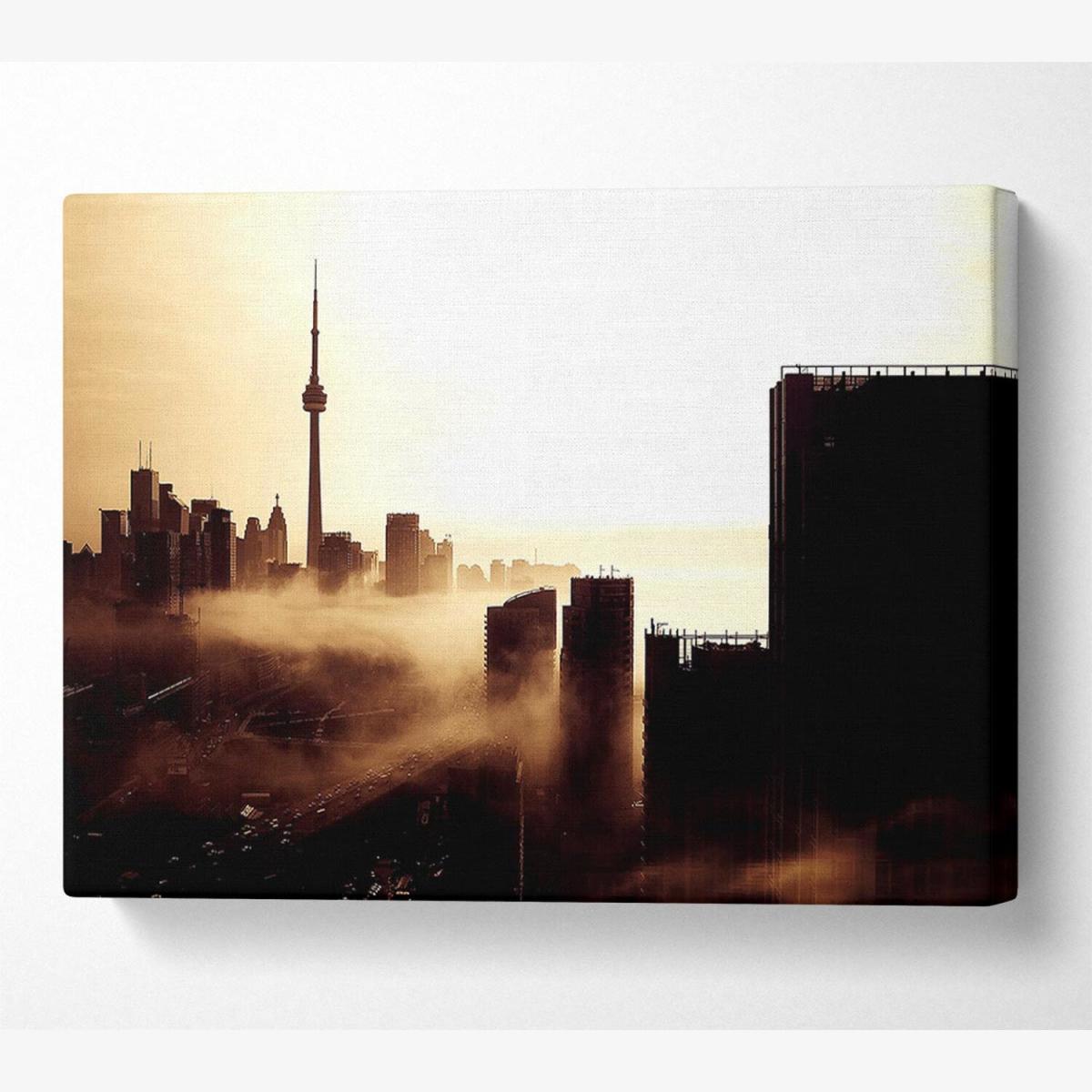 City Fog Canvas Print Wall Art - Yellow / 101.6cm