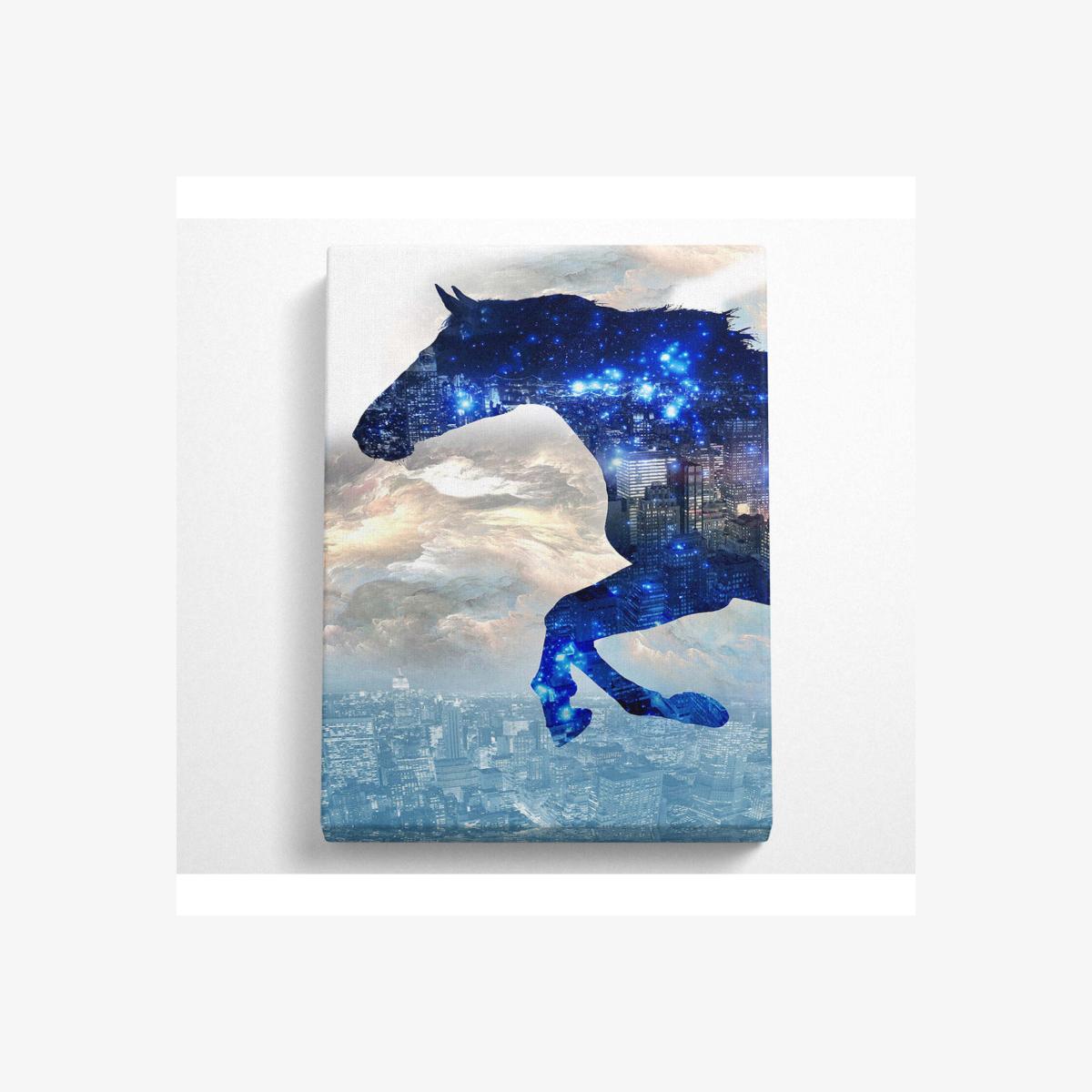 Introducing the City Horse Canvas Print, the perfect addition to any wall in your home or office. This stunning piece features a majestic horse set against a backdrop of an urban cityscape, blending nature and modernity in a unique way. The high-quality canvas ensures vibrant colors and sharp details that will captivate anyone who sees it. Available in five different sizes, from small to oversized, you can find the perfect fit for any space. The canvas print is stretched over a wooden frame, making it durable and ready to hang. Elevate your dcor with the City Horse Canvas Print and enjoy a blend of elegance and contemporary style.