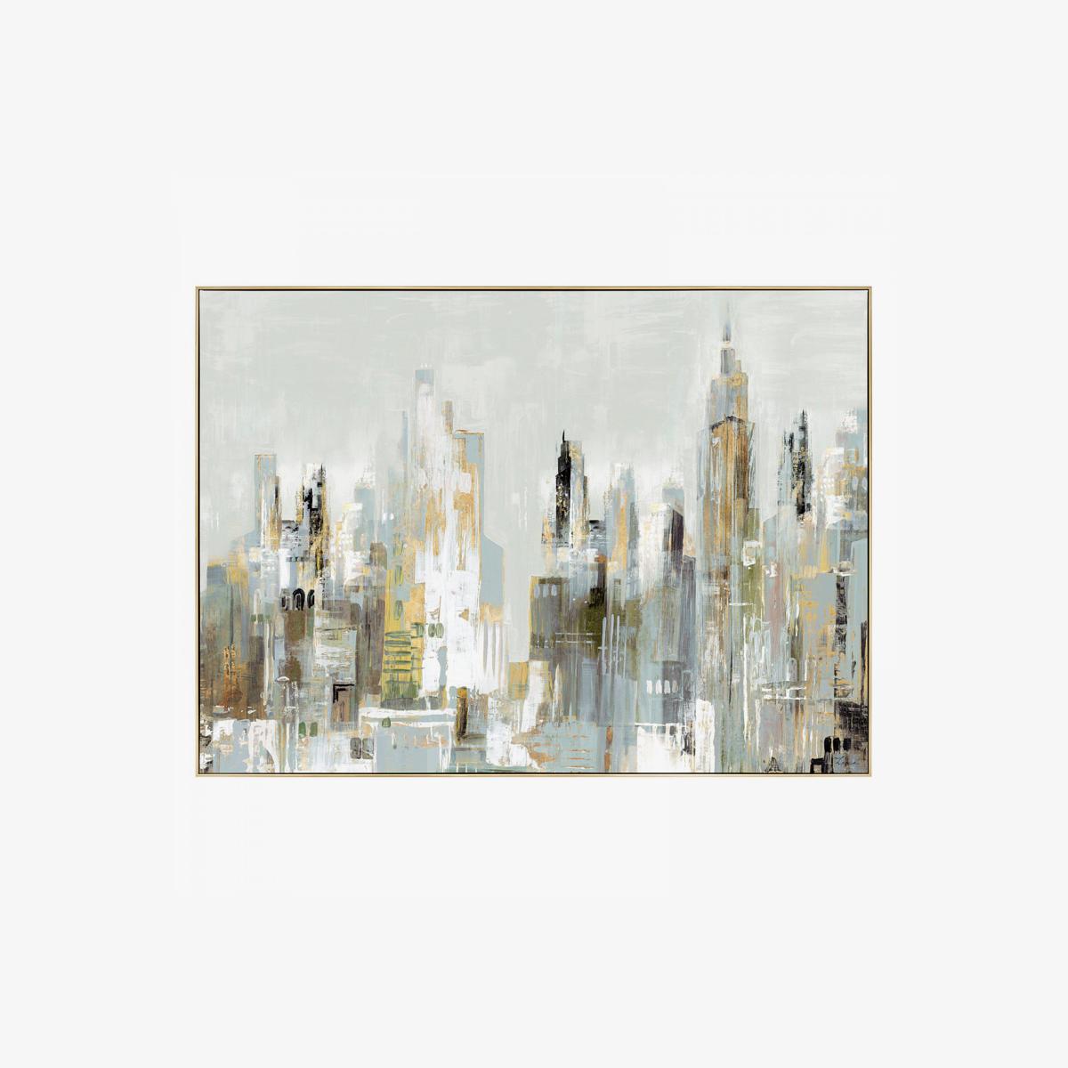Bring the energy of the city into your home with this contemporary piece. This canvas embraces neutral tones, creating an abstract representation of the vibrant city skyline with gold foil embellishments for a touch of glamour.