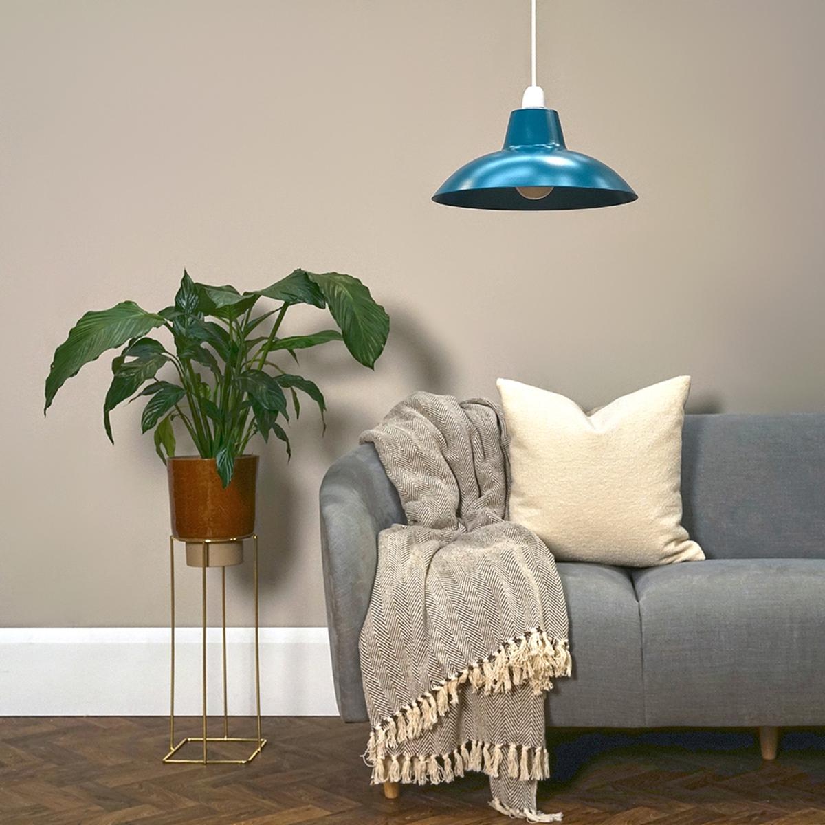 Pair of Civic Metal French Blue Shades This modern shade will provide an impressive finish to your living or bedroom space It fits to any standard ceiling pendant Pairing the shade with one of our vintage filament bulbs will be the perfect finishing touch