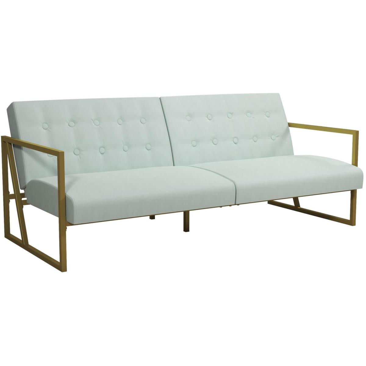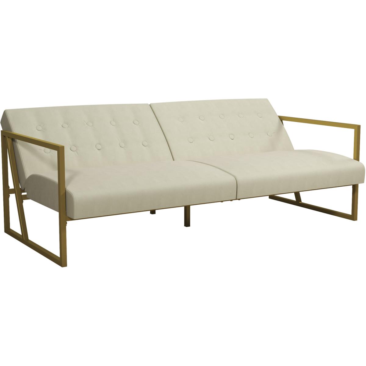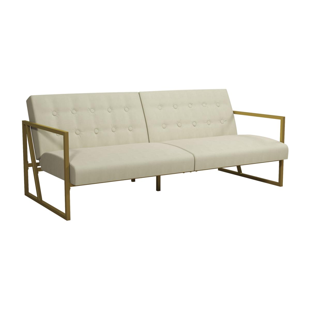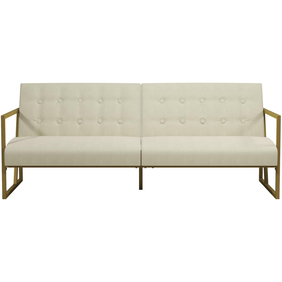 Take note the Cosmo. Living Lexington Modern Sofabed is Mid-Century design in its full glory. This sofa features a swanky gold frame and lush velvet button-tufted upholstery. It is compact and practical ideal for small spaces with a multifunctional split-back that can be reclined to kick it or lowered all the way down for overnight guests.