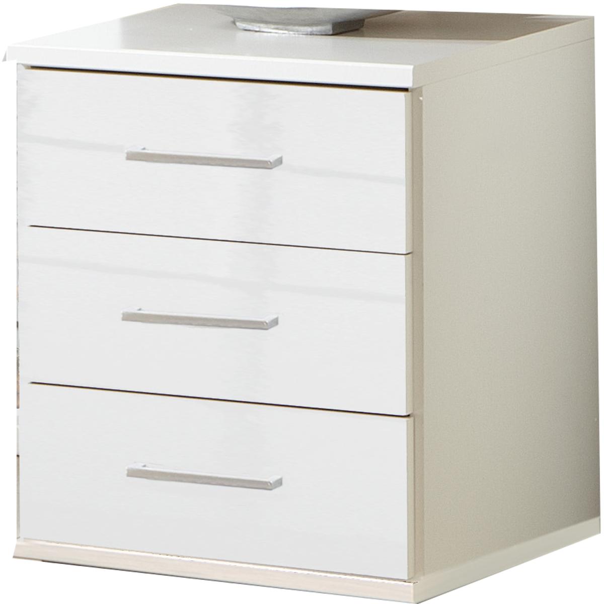 Clack 45cm Wide 3 Drawer Bedside Cabinet - White Gloss