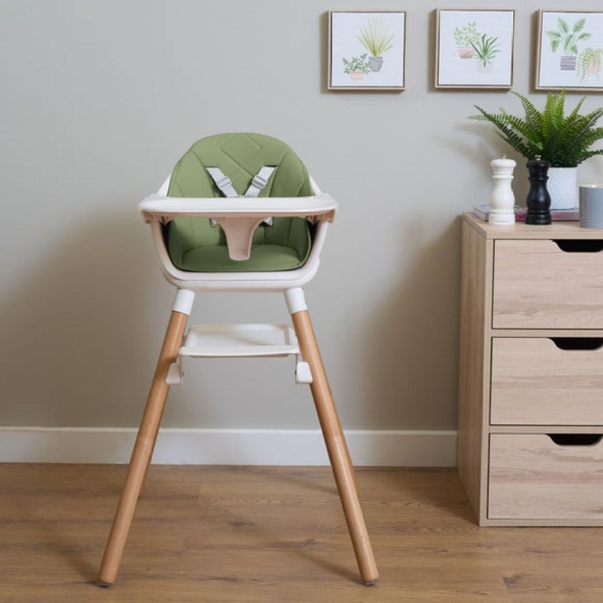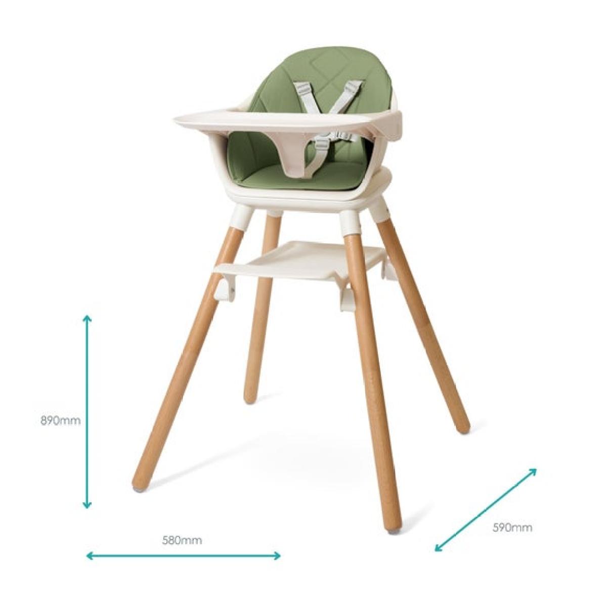 * Wooden high chair * Suitable for 6 age ranges * Faux leather seat * Wipe clean surface From first giggles to big kid breakfasts, this clever chair is designed to grow with your little one from 4 months all the way to 6 years. In the early days (around 4 to 6 months), it starts as a supportive floor seat, helping your baby sit upright and explore the world around them. As they begin weaning (typically from 6 months), it transforms into a sturdy high chair for safe, comfy mealtimes. By 18 months, it becomes a toddler chair – perfect for snack time, crafts, or story sessions. And once they hit 3 years and beyond, it cleverly converts into a junior stool, giving them a grown-up seat at the table or a perch for play.