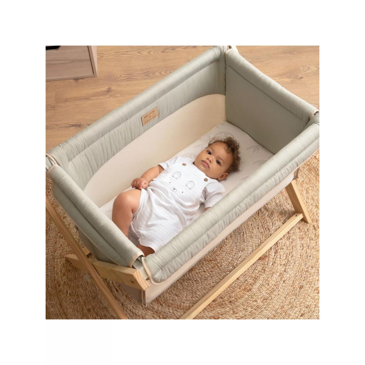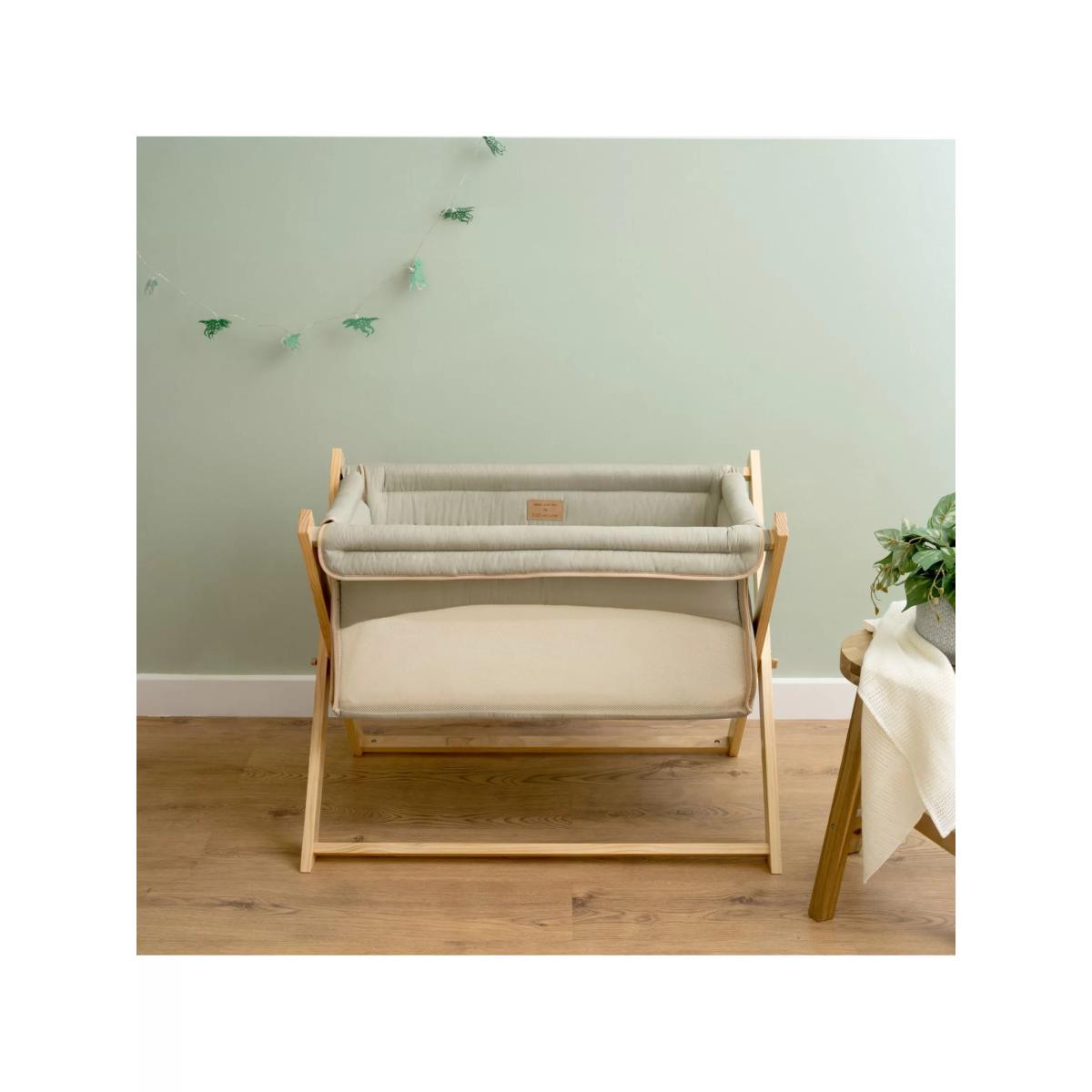 The Clair de Lune Organic Folding Crib is the perfect solution for parents who want a convenient and comfortable sleeping space for their newborn. Crafted with GOTs-certified organic cotton, this crib is gentle on your baby's delicate skin and promotes a healthy sleeping environment. The breathable mesh side panels allow maximum airflow, regulating your little one’s temperature and keeping them comfortable all night. A premium, organic bamboo mattress provides a firm and supportive sleeping surface, and features the latest technology memory wool that promotes healthy spinal development. Bamboo is also naturally antibacterial and hypoallergenic, making it ideal for sensitive skin. The mattress cover is also water-resistant and easy to clean, ensuring that your baby always has a hygienic sleeping surface. An eco-friendly, strong, durable and sustainable mattress – the wool can be composted at the end of the product's life! The Folding Crib is easy to set up and take down, making it perfect for parents who are short on space or who frequently travel. The compact design allows for easy storage, and the lightweight construction makes it easy to move from room to room. The lightweight and sustainable dressing is soft and breathable for use all year round and is tested to OEKO-TEX Standard 100. This means it's kind to your baby’s skin, as well as the planet. Safety is paramount, and the Organic Folding Crib meets all safety standards. The stationary design ensures that the crib stays securely in place, and the locking mechanism provides added security. It has been sustainably designed and crafted in the brand's Manchester-based factory, using the finest organic materials, with your newborn's comfort at the forefront of their minds. Suitable from birth to a maximum weight of 9 kg (or until baby begins to roll over, pull themselves up or sit unaided).