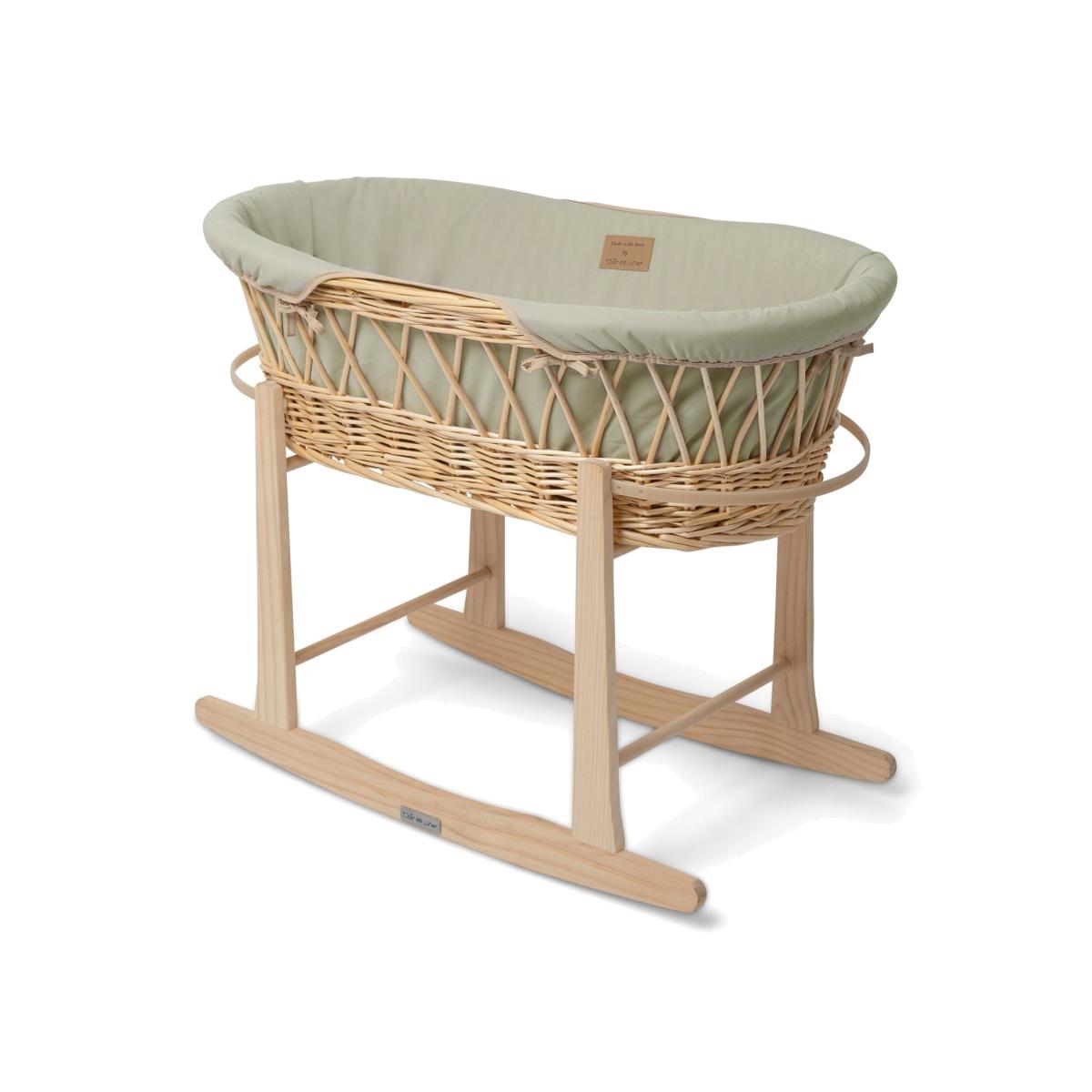 * Mattress with removable cover* Machine washable organic cotton dressings* Natural colour pine rocking stand* Choice of colours The Clair de Lune Organic Wicker Moses Basket and Stand is the perfect blend of sustainability and luxury for eco-conscious parents. Handwoven from sustainably sourced willow wicker, it offers a lightweight, breathable design with a natural varnish finish. The organic cotton dressing, crafted in Clair de Lune’s Sedex-certified British factory, is both padded and protective, ensuring your baby's comfort and is machine washable at 40 degrees. The firm, hypoallergenic bamboo mattress provides a healthy, supportive sleep surface, ideal for all seasons. Winner of Gold in the 2024 Organic & Sustainable Baby Awards, this Moses basket is as kind to the planet as it is to your newborn. Comes complete with a pine rocking stand. NOTE:Do not carry the Moses Basket while your baby is inside. Suitable from birth to a maximum weight of 9 kg (or until baby begins to roll over, pull themselves up or sit unaided). Please note we are unable to deliver this item to Northern Ireland.