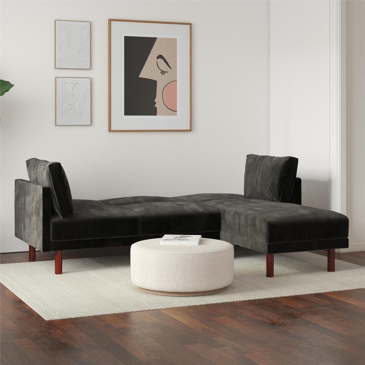 I love the black velvet on this sofa bed because it instantly elevates the look of any space, adding a sense of sophistication and texture. It works particularly well in modern or contemporary interiors, but can also be styled in more eclectic or minimalist settings. Pair it with neutral tones or bold accent cushions to create visual interest. Practical styling tips include layering with a cosy throw and decorative pillows to soften the look, especially if used in a lounge or guest room. Its dark hue is also forgiving for everyday wear, making it a versatile choice for both living and occasional use.