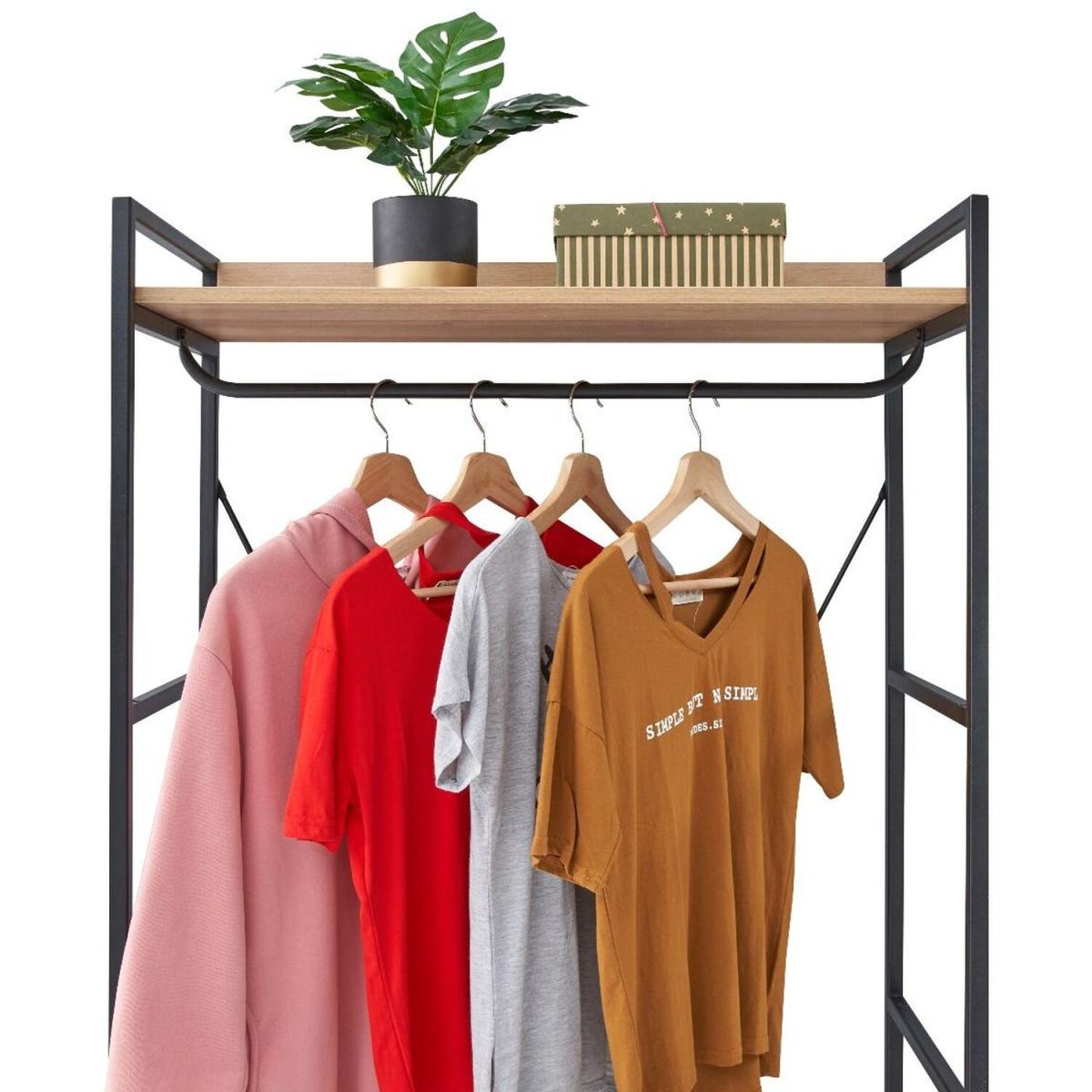 I’m a fan of this open rail for its clean lines and warm brown shelves, which slot effortlessly into Scandi-style, industrial or minimalist schemes. It works well in a bedroom, dressing area or hallway where you need both hanging space and display shelving. For a polished look, use matching wooden or velvet hangers and group clothes by colour. Fold knitwear and jeans on the lower shelves, then hide smaller items in woven baskets. Finish with a plant or decorative box on the top shelf to keep things looking styled but functional.