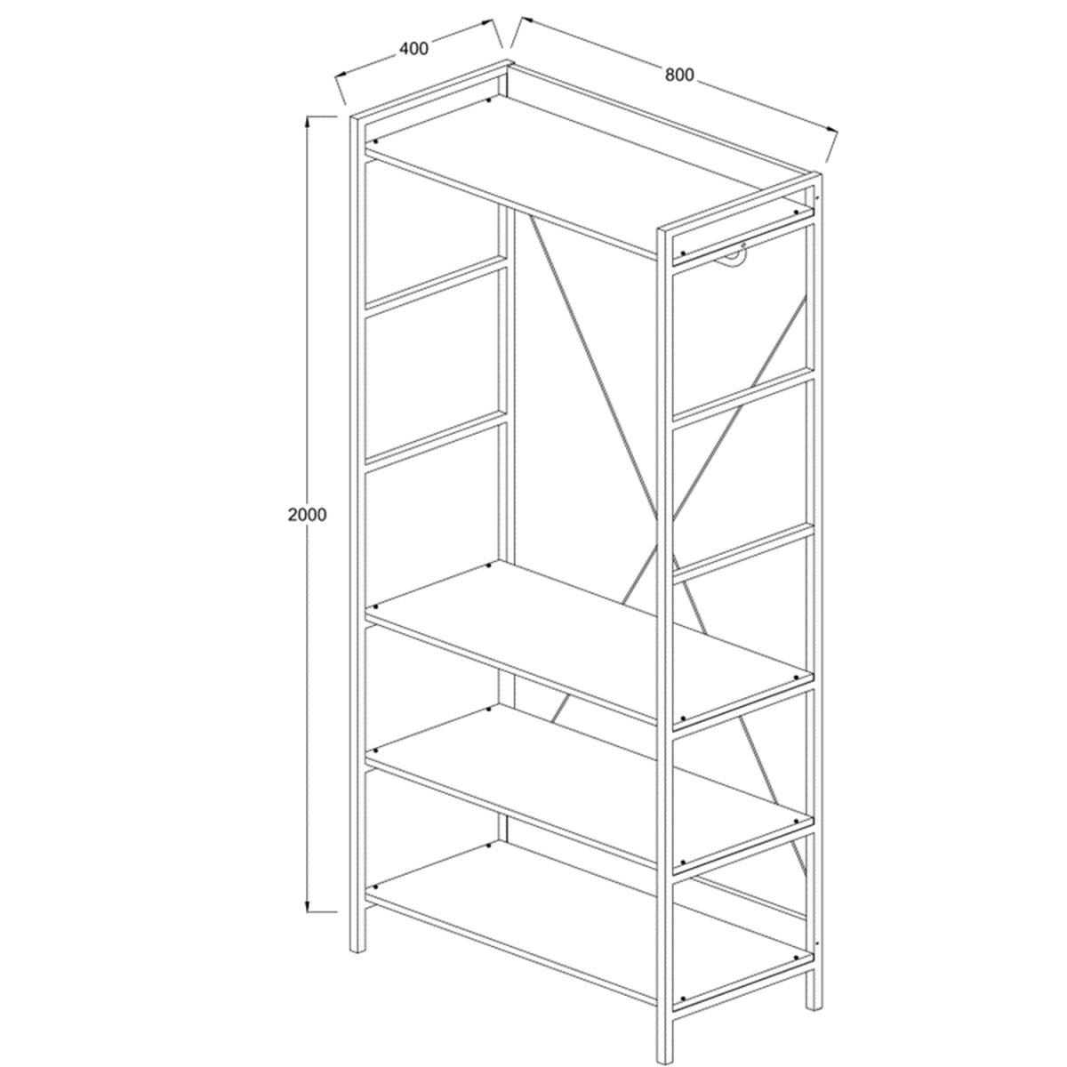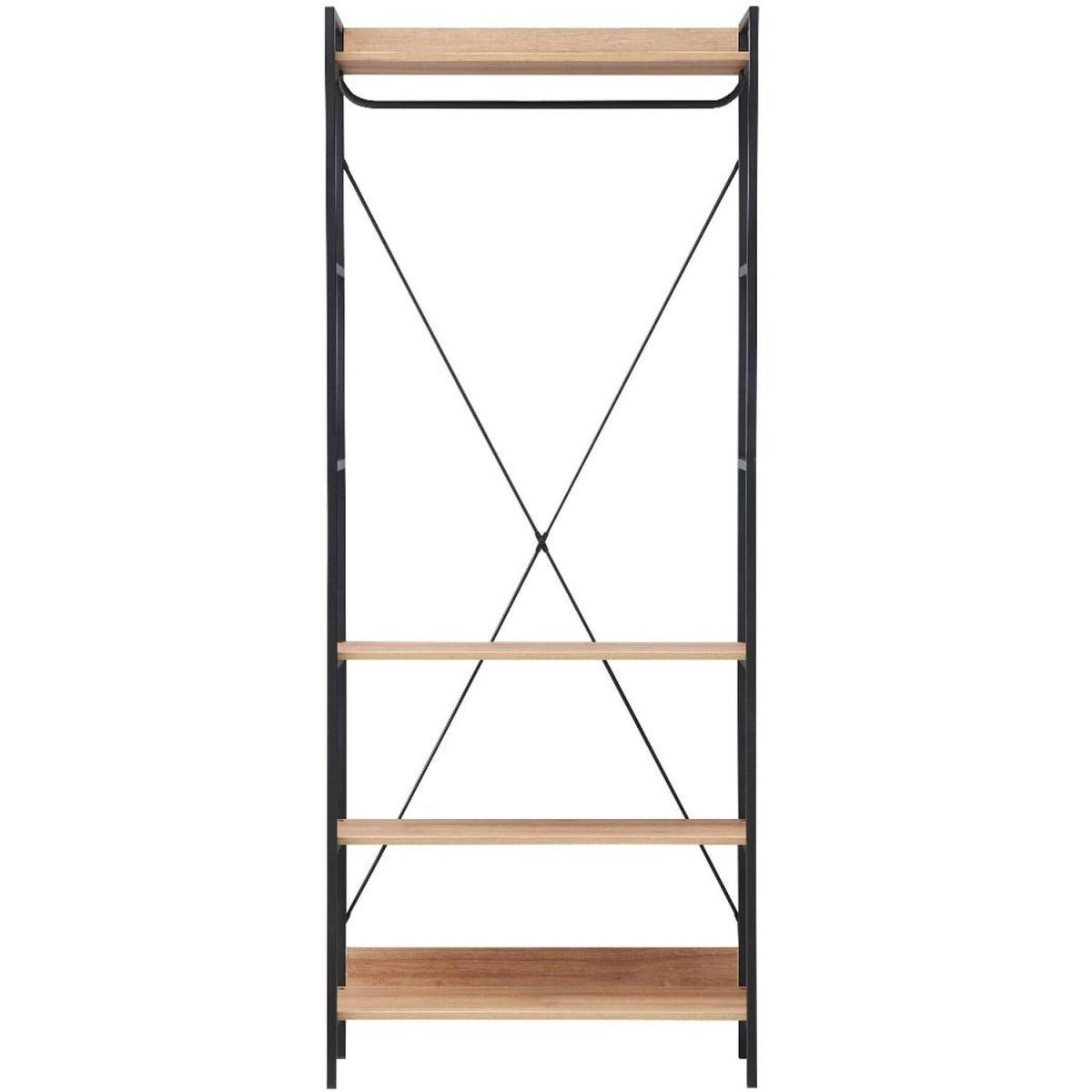 The Claire Bedroom collection will bring simple yet stylish storage to your home. Metallic Framework with a light wood effect finish. This Claire Open Wardrobe offers open storage and features a Light Oak Finish with Metallic Frames. This item includes a rail for hanging your shirts, suits, or dresses with an additional 4 shelves for extra storage.