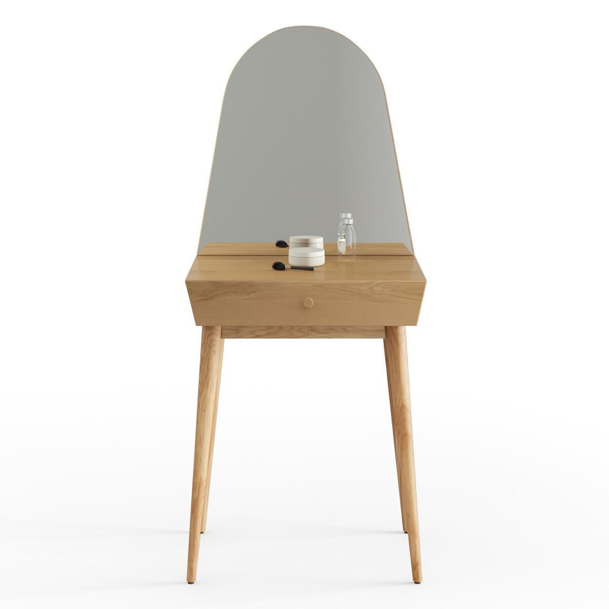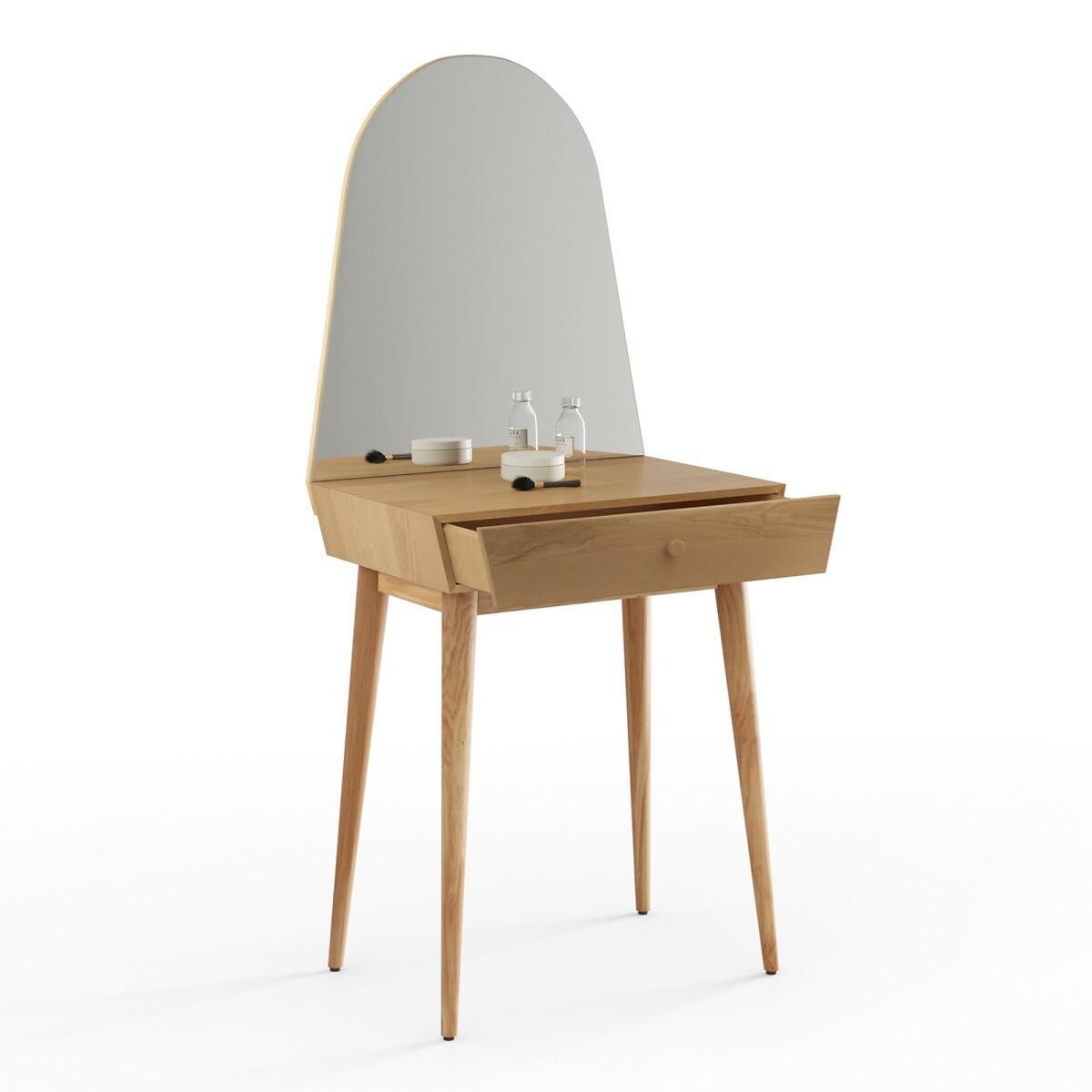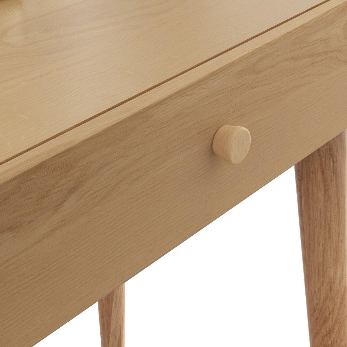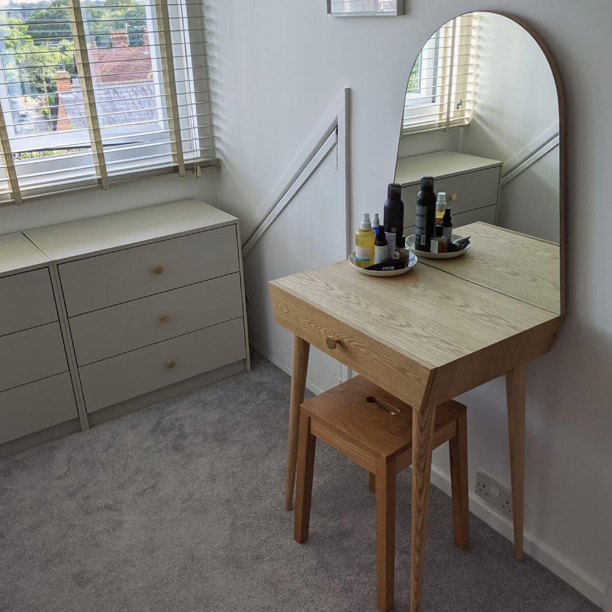 I love this minimalistic dressing table because of its clean Scandi aesthetic and versatile design, which makes it suitable for a variety of interiors from modern to Nordic-inspired spaces. Its understated wooden finish and simple form allow it to blend seamlessly without overwhelming a room. Practical styling tips include adding organiser trays or storage boxes inside the drawer to keep everyday essentials tidy, and pairing it with a sleek chair or stool for comfort. Placing a few carefully curated accessories, like a small potted plant or a minimalist lamp, can also elevate its look without clutter. Overall, it’s a smart, stylish choice that balances function and simplicity beautifully.