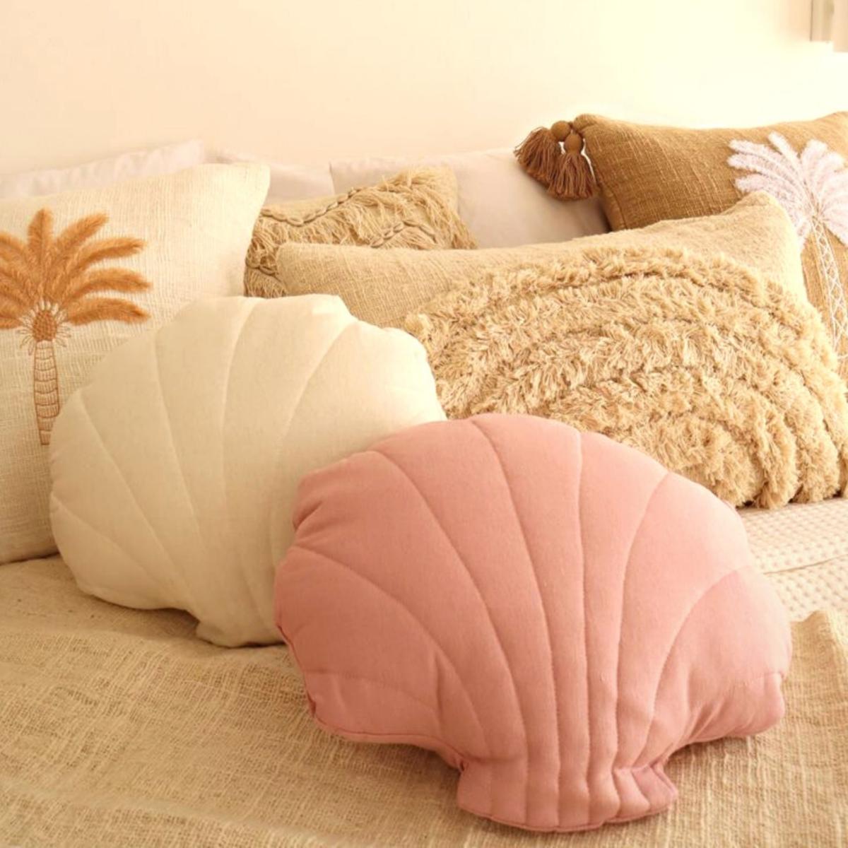This clam shell plush pillow is a perfect way to decorate your favorite spot in your home. Handmade by women artisans in Bali. Back zipped closure. Material: Cotton. Insert is included. Color:Pink