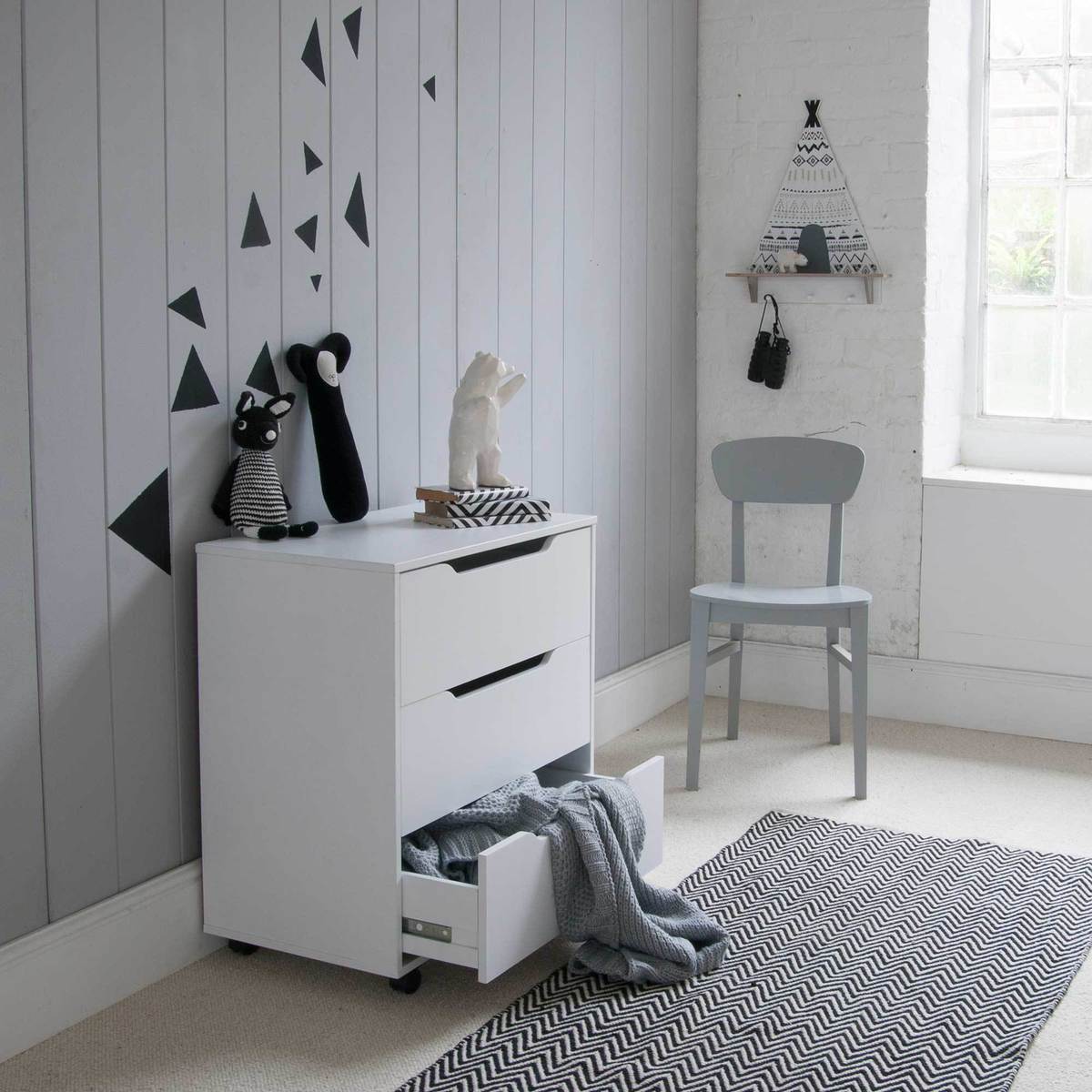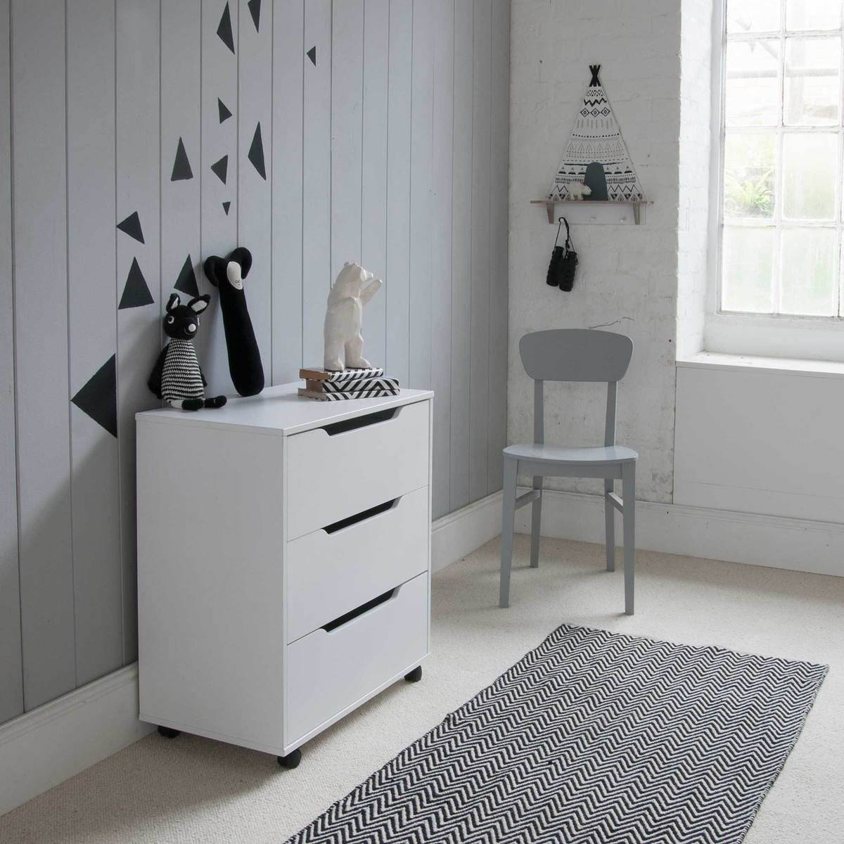 The Clancy chest is a practical and versatile piece that works well in both contemporary and minimal interiors, thanks to its sleek white finish and clean lines. I love how it offers ample storage while maintaining a compact profile, making it ideal for bedrooms, home offices, or even hallways. Styling tips include pairing it with streamlined accessories or pairing with soft textiles for a cosy contrast. Additionally, it functions well as a side table or a space to display a few decorative items on top, balancing aesthetics with function perfectly.