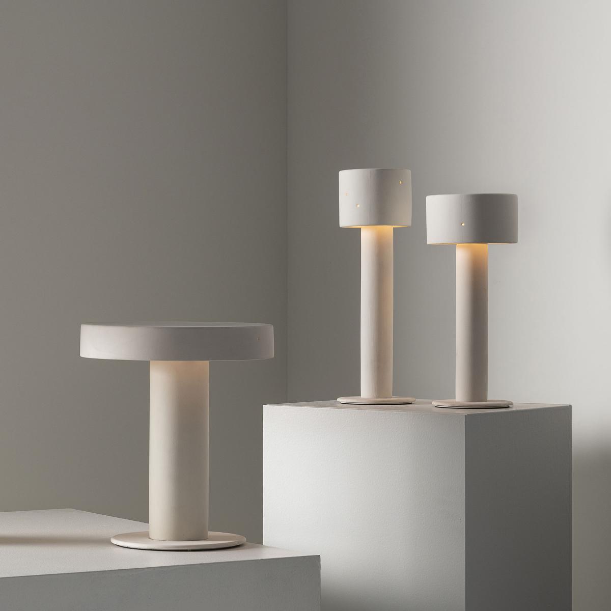 A stunning play on shapes and materials is guaranteed with these truly unique table lamps… Sturdy yet delicate and elegant, these white sandstone lamps have been designed by Antwerp ceramics artist Anita Le Grelle. It presents sleek and solid shapes that showcase the tactility of the material. The bold, solid lines define a clean silhouette with the right proportions and perfectly balanced. These resolutely modern and high-end pieces boast an artisan quality. Anita Le Grelle designed the Clara lamp collection with inspiration from her own children, who had all left home and were looking for accessories to furnish homes of their own. For the Terres de Rêves, she worked with her daughter Pauline. The small holes in the ceramic lampshades evoke glistening stars.