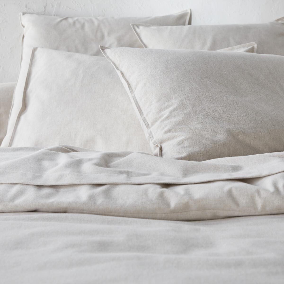 Made from pure cotton flannel, delicately brushed to give you a downy feel, Clara envelops you in comforting warmth ideal for cool nights. The cotton flannel is a brushed cotton giving it a felted and fluffy appearance, very soft to the touch. Very thick and warm, it is the ideal bedding to face winter's chill. Product Details • 100% cotton • Chambray flannel • Straight buttoned hem Care Advice • Machine washable at 60°C • By washing your laundry at 40°C instead of 60°C, you limit energy consumption. Dimensions • 140 x 200cm: Single • 200 x 200cm: Double • 240 x 220cm: Super King • 260 x 240cm: King • MADE IN PORTUGAL. • OEKO-TEX® Standard 100. Standard 100 certification by OEKO-TEX® tests textile products for harmful substances via an independent, international label.
