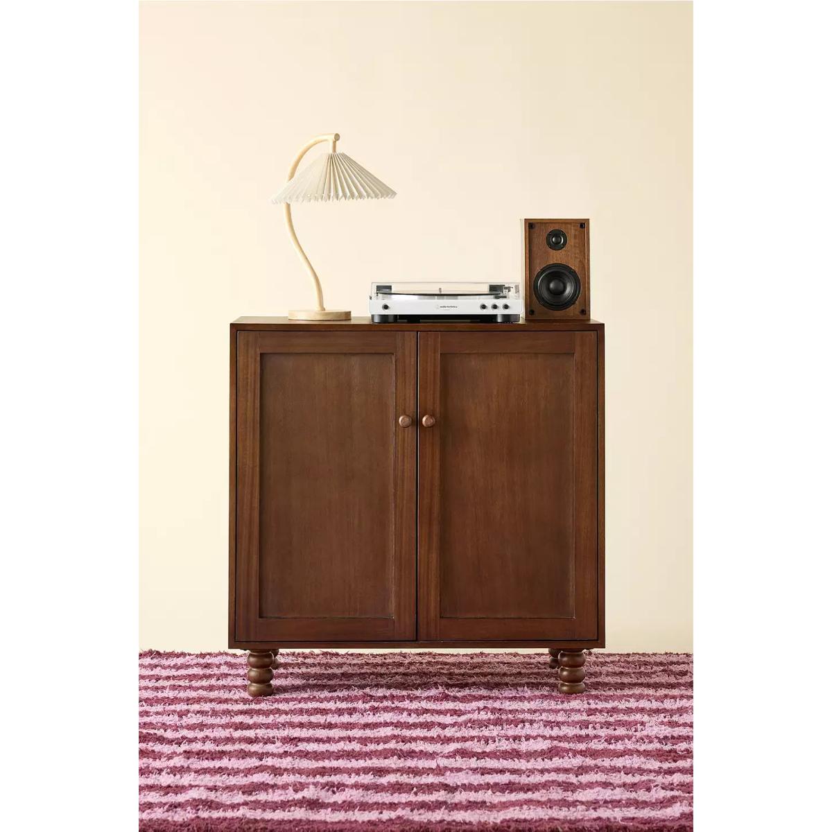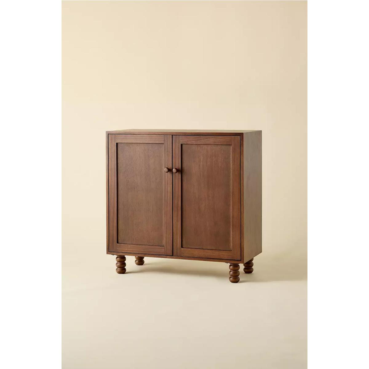 Give your storage furniture a timeless refresh with this wood entryway cabinet. This storage cabinet features low-slung silhouette with bubbled legs for a whimsical look we love. This cabinet showcases two cabinet doors that open to reveal an adjustable shelf to store your shoes, games and more. Available exclusively at Urban Outfitters. *Online return only. This item cannot be returned instore. Please note furniture items currently cannot be shipped to Northern Ireland or The Republic of Ireland. Delivery of large furniture items may take 1-2 weeks and are therefore not eligible for Next Day Delivery.* **Content + Care** \- Assembly required - instructions and hardware included \- MDF, Mango Wood \- Wipe clean **Size** \- Dimensions: L: 86.4cm x W: 38.1cm x H: 86.4cm \- Weight: 132 lbs \- Shipping package dimensions: L: 96.52cm W: 48.26cm H: 86.36cm