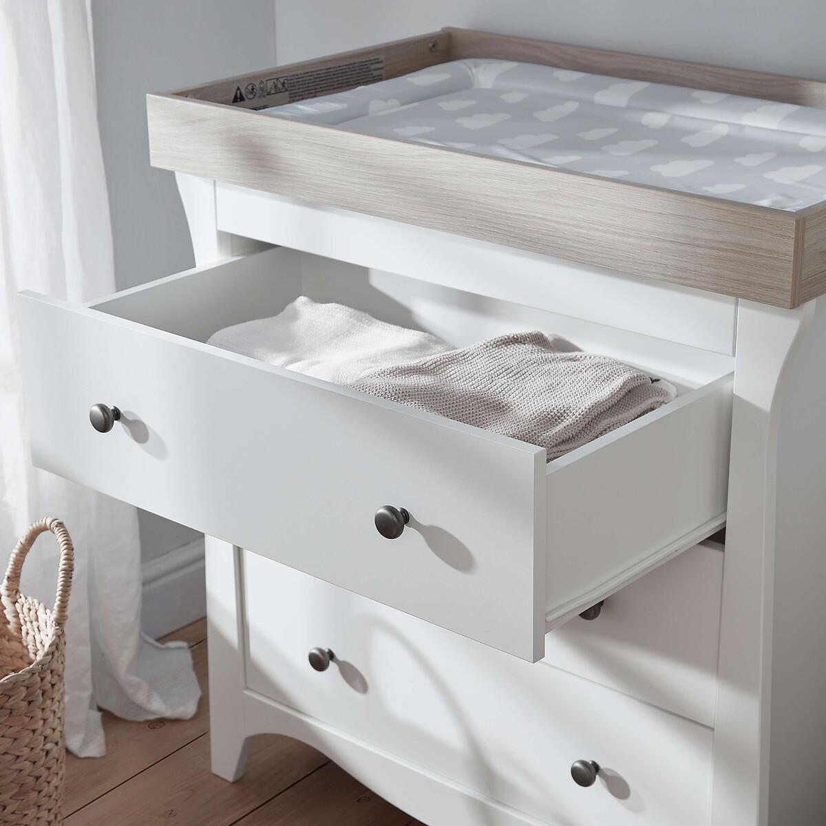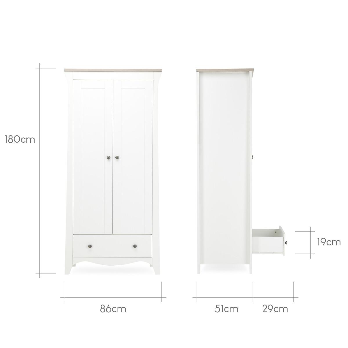 Complete your fairy tale with the Clara 3pc furniture set, including a cot bed, 3 drawer dresser and changer and 2 door double wardrobe. Classic curvature with a modern contemporary look, function and style to transform any nursery. Clara full size cot bed suitable from birth to about 5 years. Designed with 3 mattress positions, the Clara easily converts into a modern a stylish toddler bed for years of enjoyment. Clara 3 drawer dresser designed to offer you style, storage and function with 3 spacious drawers and a removable changing station. Clara double wardrobe designed to successfully organise your nursery, 2 removable hanging rails to convert into a full size wardrobe, a deep storage drawer and a handy shelving space. Designed to care, designed to last. Self Assembly Required. Cot bed - 7.82% MDF, 60.76% laminated chipboard, 29.92% pine timber, 1.5% steel Dresser - 5.32% HDF plate, 8.31% MDF board, 84.37% laminated chipboard, 2% steel Wardrobe - 7.37% HDF plate, 9.04% MDF board, 82.09% laminated chipboard, 1.5% steel. Please remember to measure your available space before ordering. Parcel 1 Packaged Dimensions: 99cmx 89cmx 18cm Weight: 24350g Parcel 2 Packaged Dimensions: 150cmx 82cmx 14cm Weight: 21900g Parcel 3 Packaged Dimensions: 94cmx 57cmx 11cm Weight: 21950g Parcel 4 Packaged Dimensions: 80cmx 53cmx 14cm Weight: 21200g Parcel 5 Packaged Dimensions: 94cmx 56cmx 14cm Weight: 27750g Parcel 6 Packaged Dimensions: 187cmx 51cmx 7cm Weight: 21250g Parcel 7 Packaged Dimensions: 179cmx 51cmx 5cm Weight: 15250g. Unless faulty or damaged, goods need to be in their original unopened packaging to be returned. This product will be dispatched by one of our trusted suppliers. You’ll be contacted by their selected courier about your delivery. CUDDL01