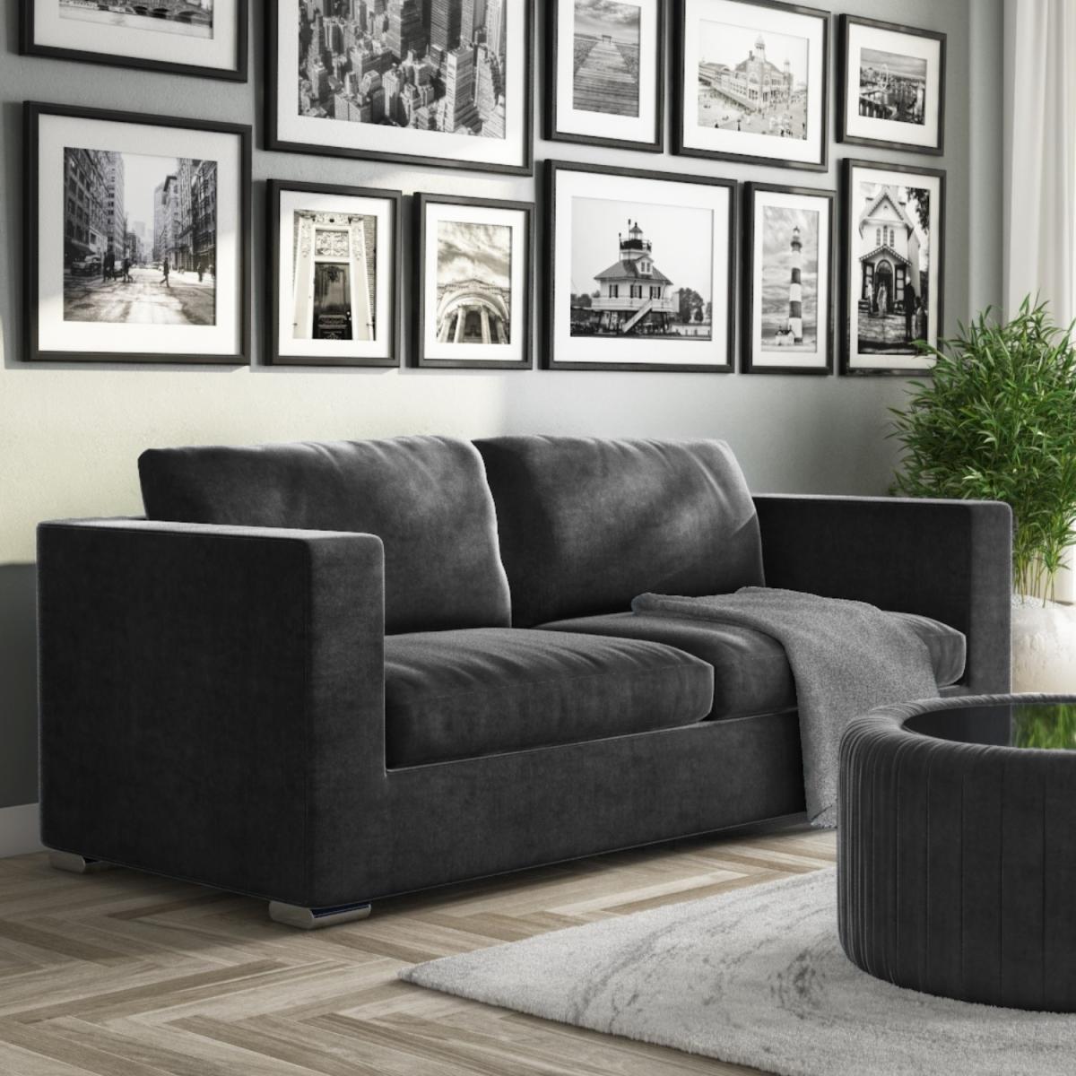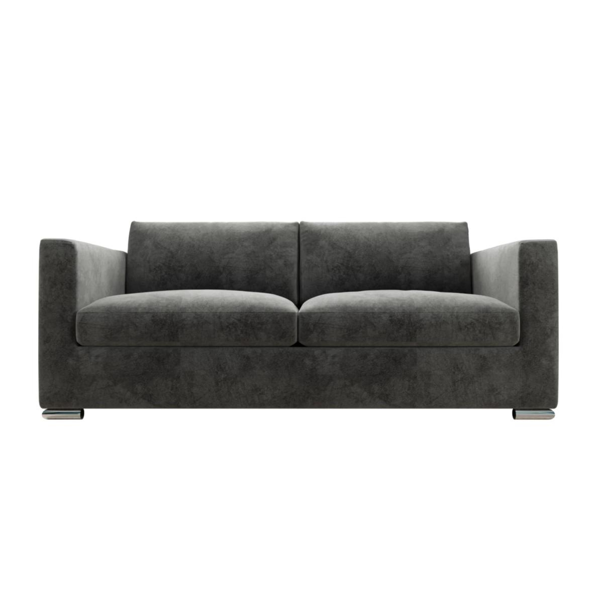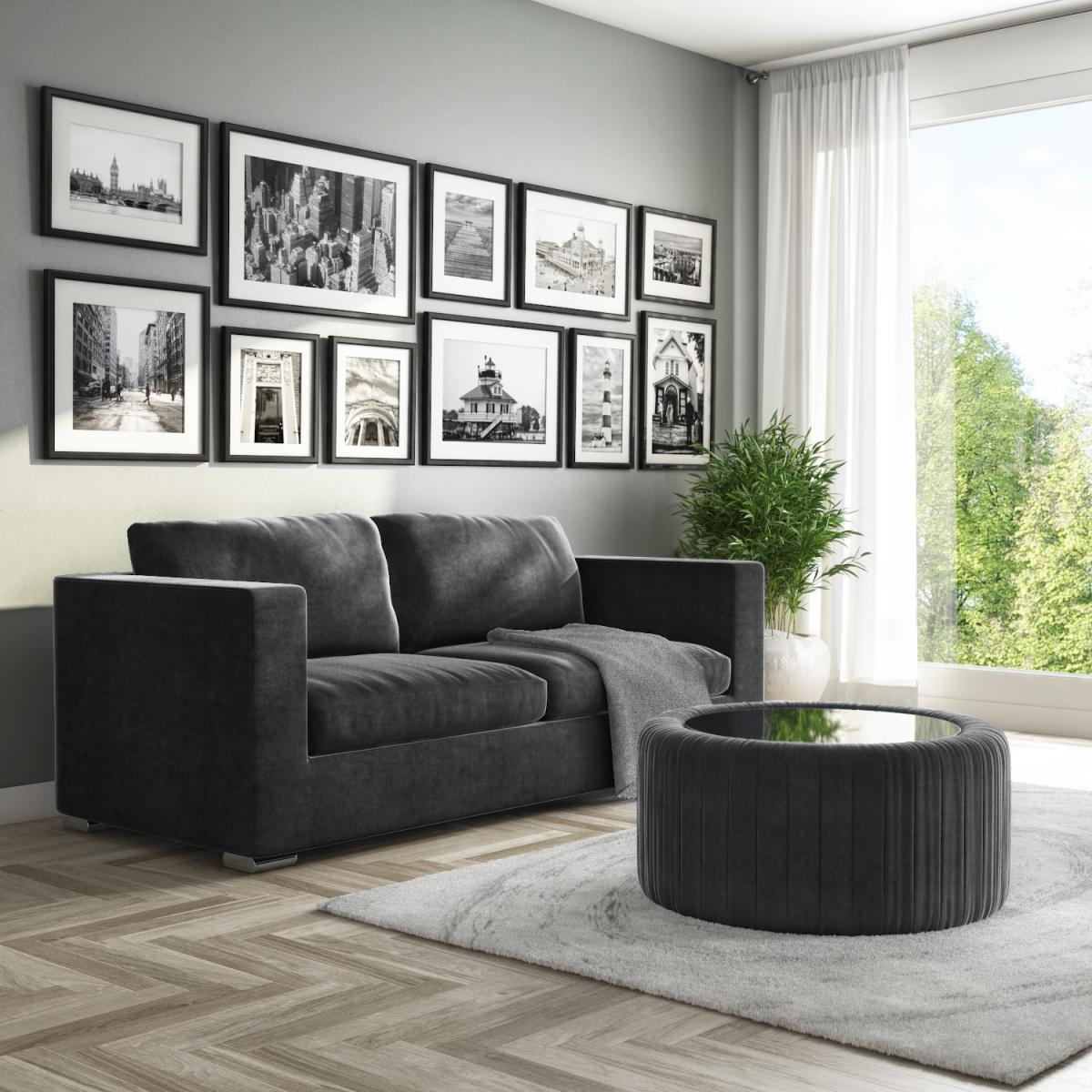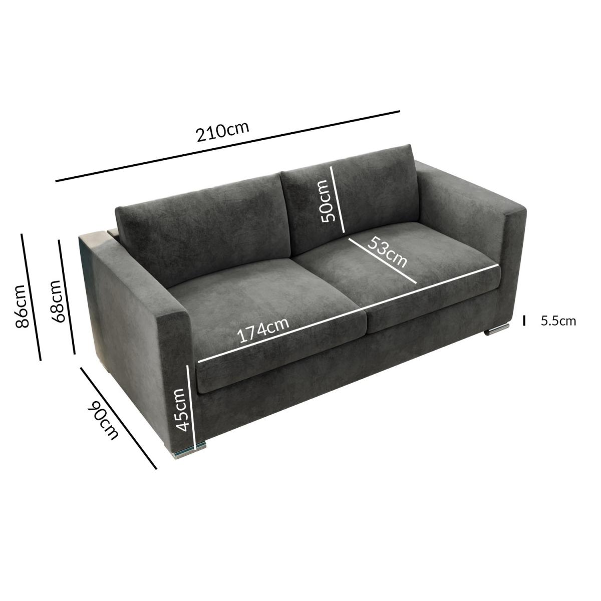 This Clara three seater sofa is cool and contemporary featuring square lines and modern block arms. With a minimalist design all eyes are on the sumptuous dark grey velvet finish which is irresistibly soft. Discover maximum comfort and minimum maintenance with this gorgeous, foam-filled sofa. It offers an easy way to bring a splash of colour to the living space as the on trend blue really pops, instantly brining vibrancy to your space. The plush velvet finish is complimented beautifully by clean shiny silver feet which enhance its modern good looks. The sofa has been carefully crafted with a combination of tough materials, so you can rest easy. The frame has been made using solid eucalyptus wood and thick plywood. Whilst the interior consists of S springs and pocket springs to create a durable and comfortable platform. The cushions are layered with high density foam, providing a frim yet comfortable place to sit back and relax.