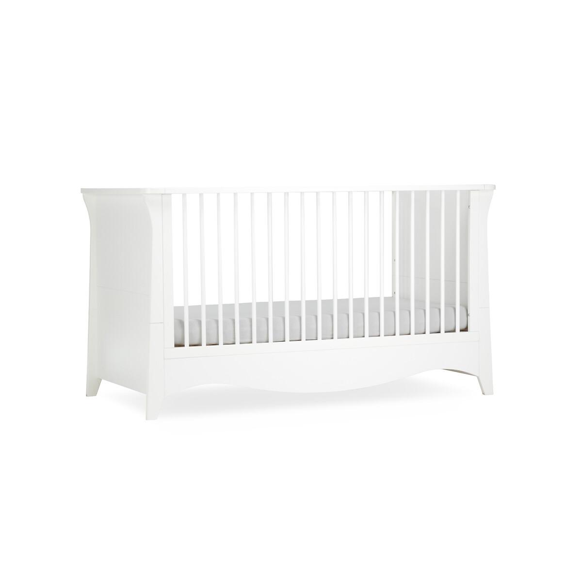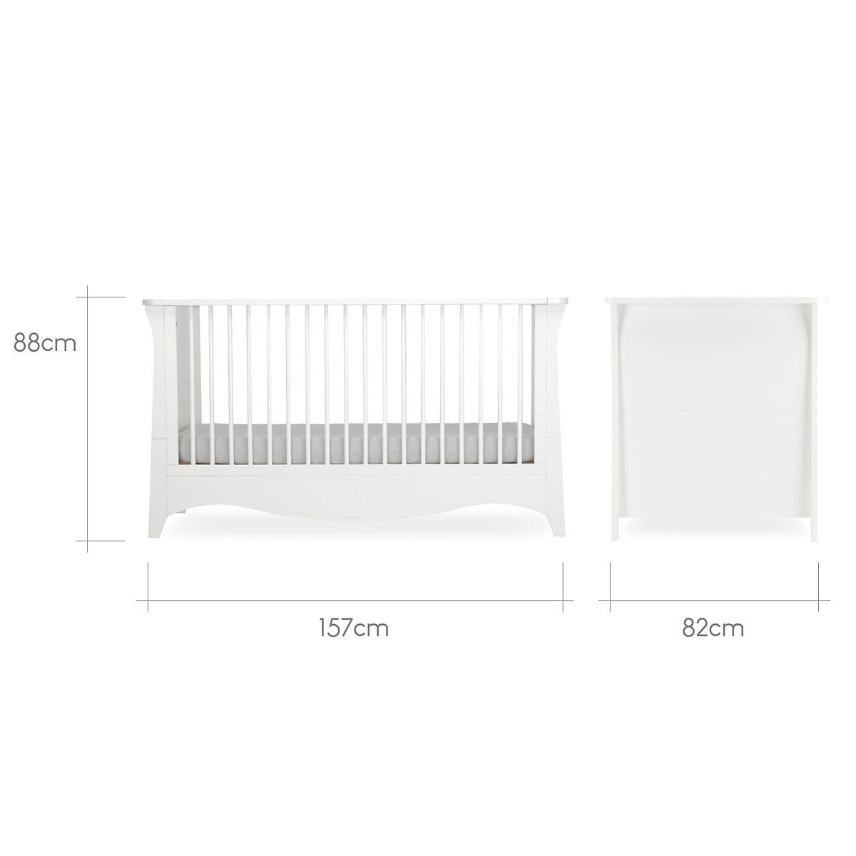 Complete your fairy tale with the Clara furniture set. Classic curvature with a modern contemporary look, function and style to transform any nursery. Clara Full size cot bed suitable from birth to about 5 years. Designed with 3 mattress positions, the Clara easily converts into a modern a stylish toddler bed for years of enjoyment. Classic styling to transform a modern nursery. Designed to care, designed to last. Self Assembly Required.7.82% MDF, 60.76% laminated chipboard, 29.92% pine timber, 1.5% steel Parcel 1 Packaged Dimensions: 156cmx 88cmx 82cm Weight: 24350g Parcel 2 Packaged Dimensions: 156cmx 88cmx 82cm Weight: 21900g. Unless faulty or damaged, goods need to be in their original unopened packaging to be returned. This product will be dispatched by one of our trusted suppliers. You’ll be contacted by their selected courier about your delivery. CUDDL01