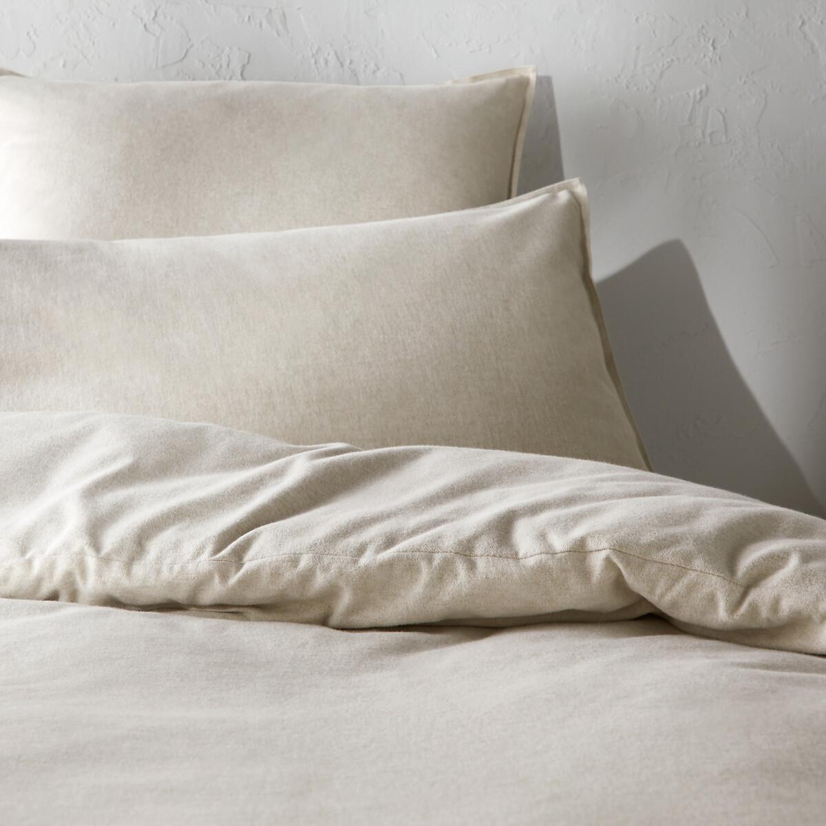 Made from pure cotton flannel, delicately brushed to give you a downy feel, Clara envelops you in comforting warmth ideal for cool nights. The cotton flannel is a brushed cotton giving it a felted and fluffy appearance, very soft to the touch. Very thick and warm, it is the ideal bedding to face winter's chill. Product Details • 100% cotton flannel • Chambray flannel • 1cm double stitched flat ruffle. Care Advice • Machine washable at 60°C • By washing your laundry at 40°C instead of 60°C, you limit energy consumption. Dimensions • 50 x 70cm: Rectangular pillowcase • 63 x 63cm: Square pillowcase • MADE IN PORTUGAL. • OEKO-TEX® Standard 100. Standard 100 certification by OEKO-TEX® tests textile products for harmful substances via an independent, international label.