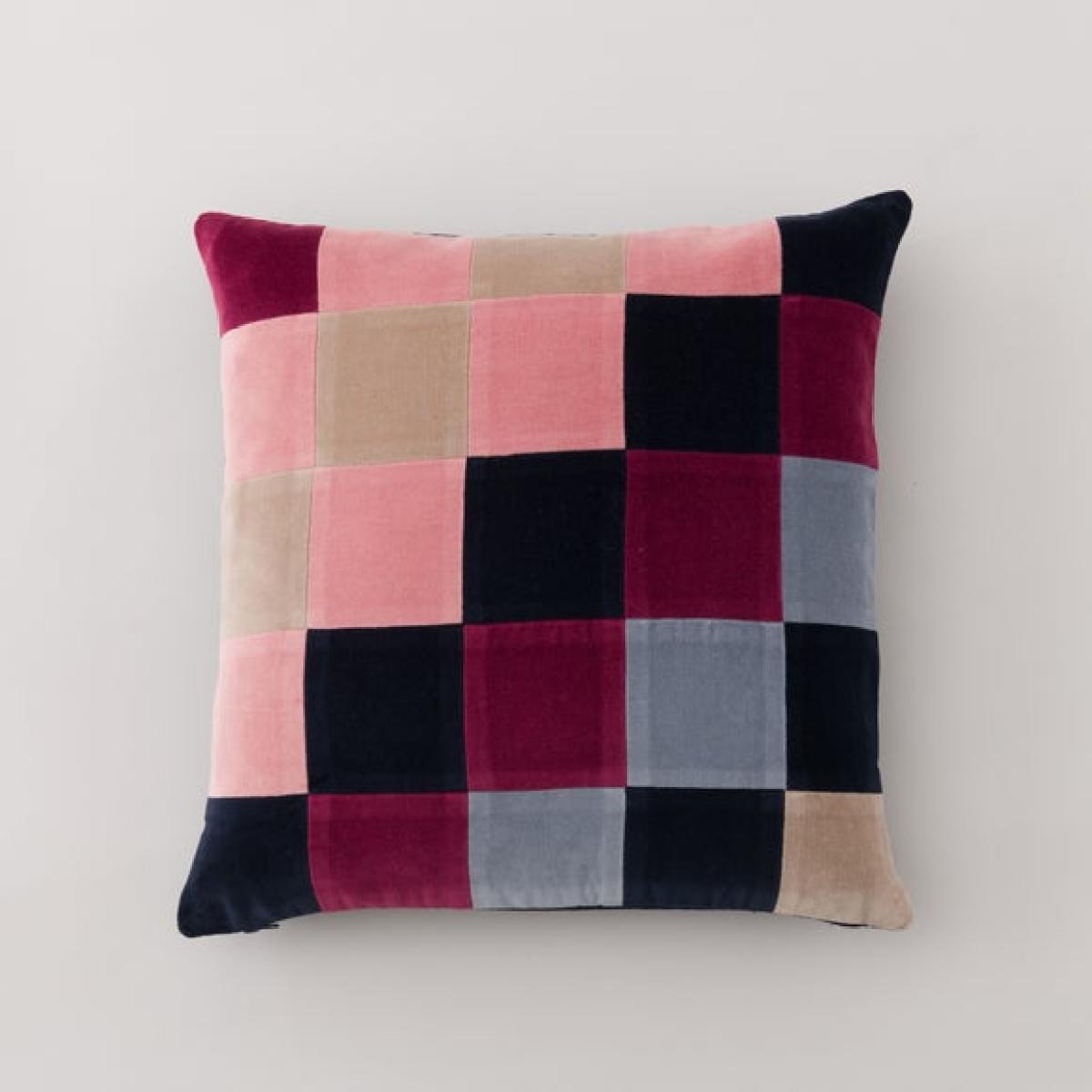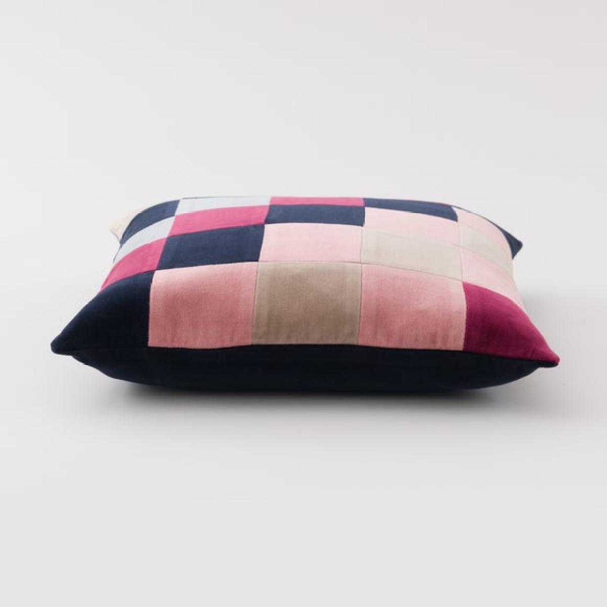 Clara Cubed Patchwork Cotton Velvet Square Cushion