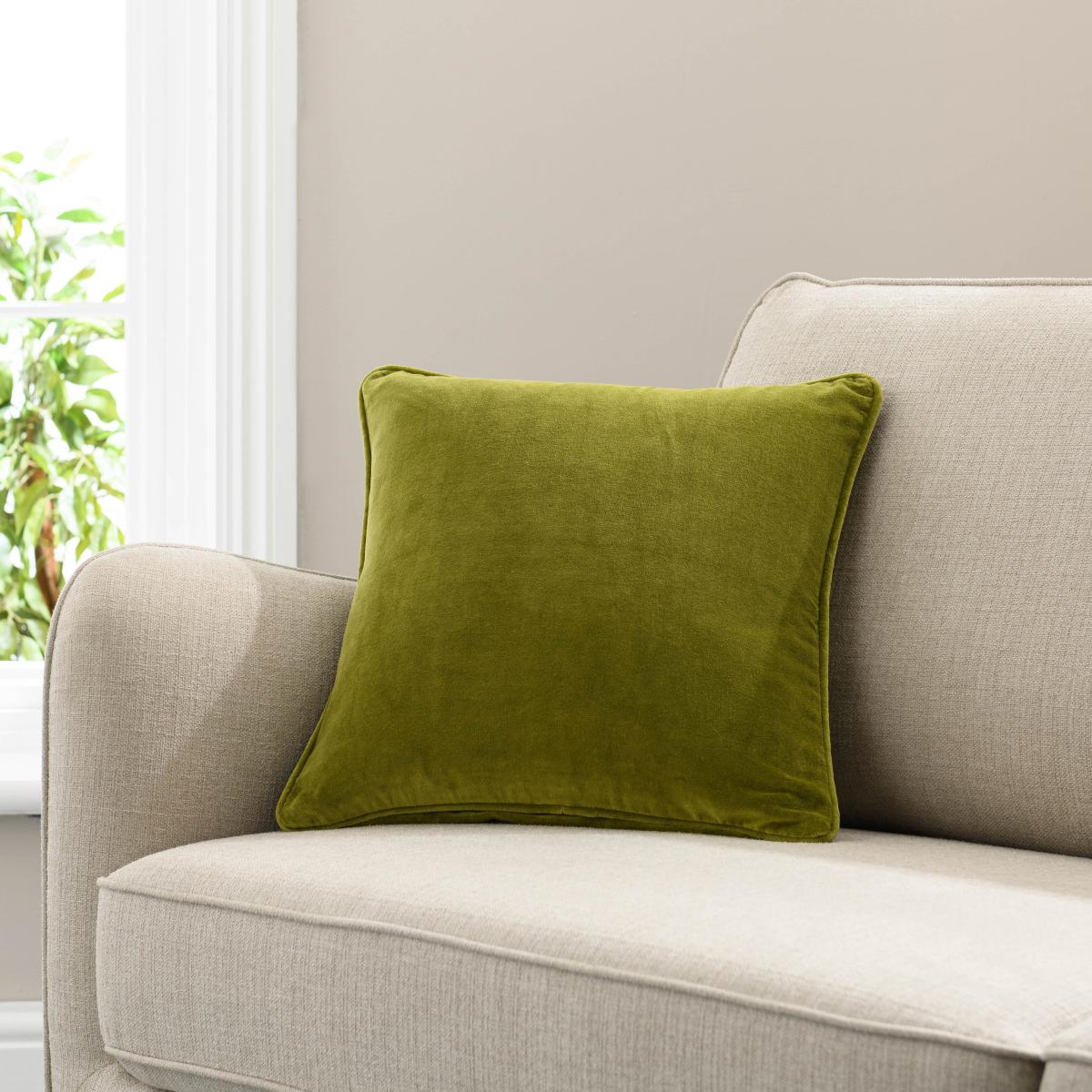 * Stylish Design* Plump Filling* Cotton Velvet Fabric Crafted with a cover made from a quality 100% cotton velvet, this plain cushion features a smart, piped edge and has been filled with a feather insert for ultimate comfort. This cushion is available in a range of stylish colours.