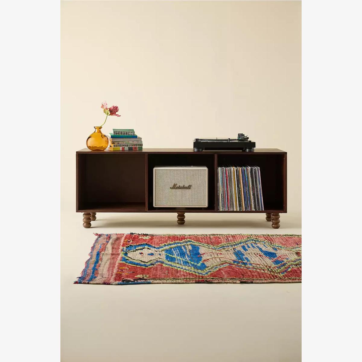 A timeless wood credenza that offers spacious storage cubbies to display your vinyl library, gaming consoles and more. This TV stand features a low-slung silhouette with a trio of open-face storage cubbies. Ft. a cutout in the back to keep your wires tidy. Propped on bubbled legs for a whimsical finishing touch. Available exclusively at Urban Outfitters. *Online return only. This item cannot be returned instore. Please note furniture items currently cannot be shipped to Northern Ireland or The Republic of Ireland. Delivery of large furniture items may take 1-2 weeks and are therefore not eligible for Next Day Delivery.* **Content + Care** \- Assembly required - we recommend two people for assembly. Assembly instructions and hardware are included. \- Mango wood, MDF, veneer \- Wipe clean \- Imported **Size** \- Dimensions: L: 152.4cm W: 45.7cm H: 55.9cm \- Weight: 70.4 lbs \- Shipping package dimensions: L: 162.56cm W: 31.75cm H: 55.8cm
