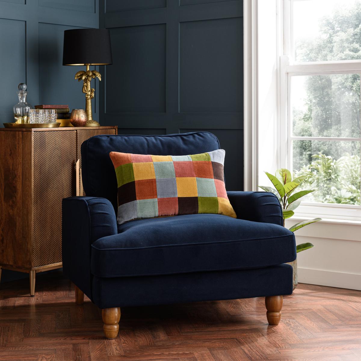 * Stylish patchwork design* Plump filling* Cotton velvet fabric Elevate the ambience of your home with our sumptuous Clara Patchwork cushion. The face of the cushion is crafted from 100% cotton velvet pieces sewn together in a checkerboard design and finished with a plain reverse. This colourful cushion will lift your mood every time you look at it! We filled it with a feather insert for ultimate comfort. Coordinate with plain coloured Clara cushions for a beautifully stylish look to your home.