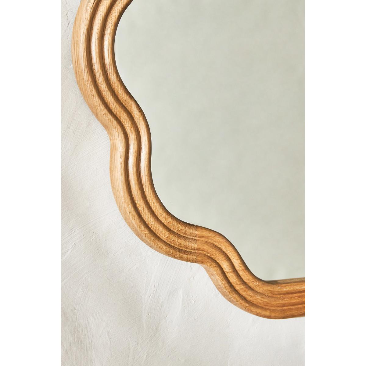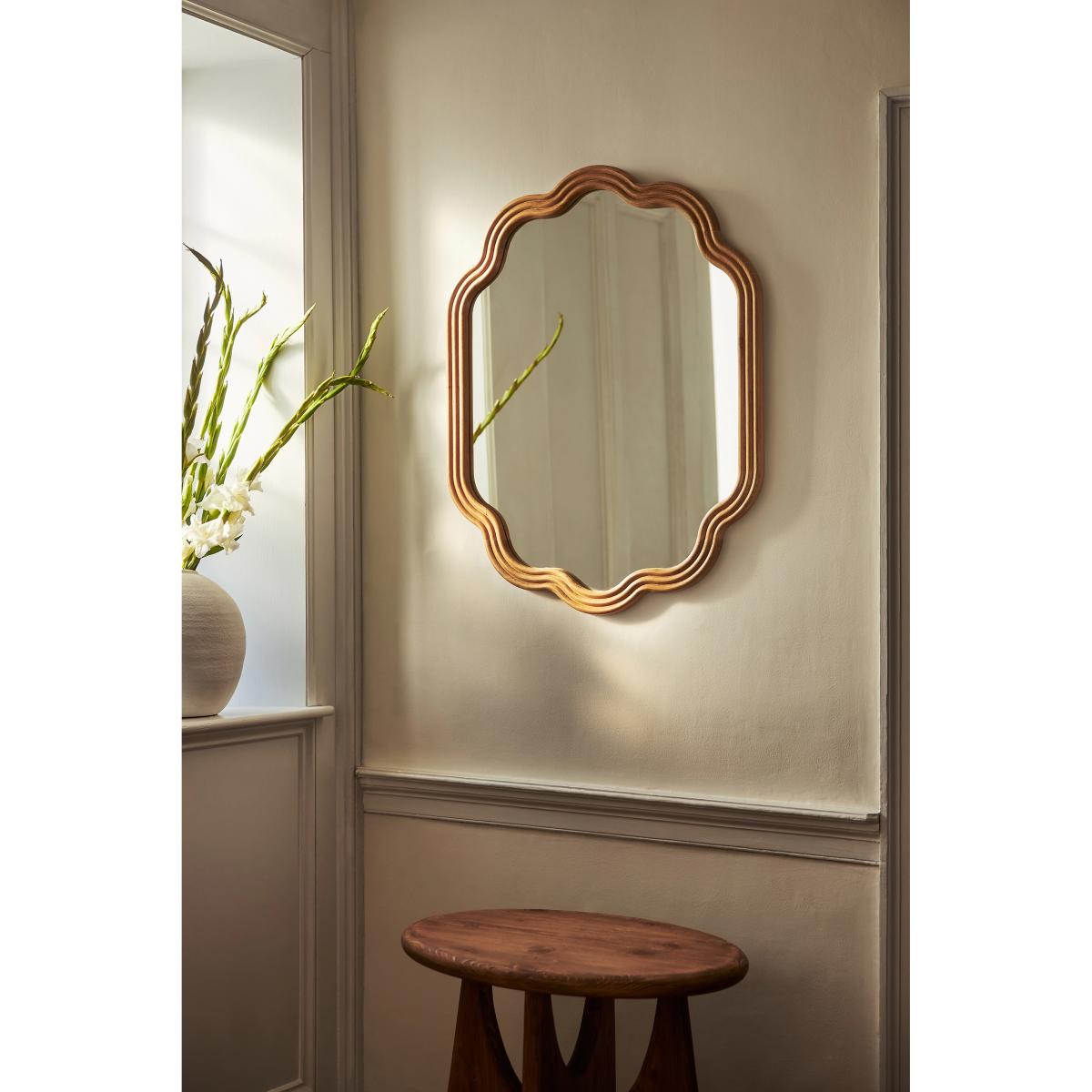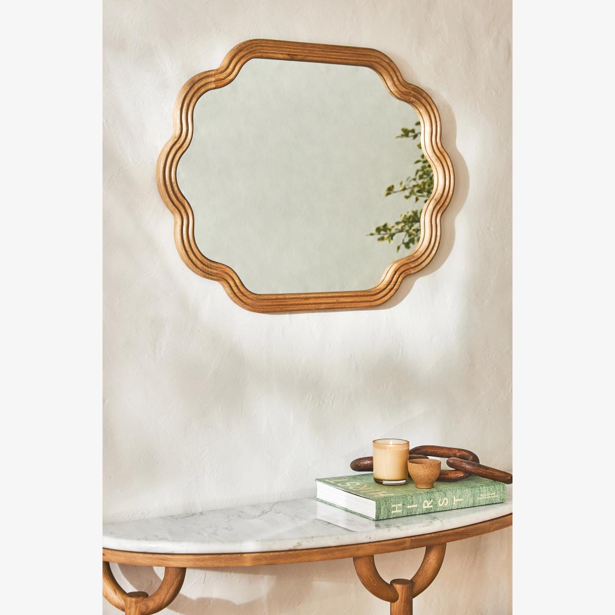 A sweet scalloped trim lends this mirror heaps of charm. * Because this piece is crafted by hand, no two pieces are exactly alike. Please expect unique variations in colour, natural texture, and pattern (including woodgrain) from the imagery shown * Natural: Oak wood * Blue & Green: Tropical hardwood * Handcrafted; reinforced with engineered hardwood, mirrored glass * Can be hung vertically or horizontally * Fitted with ready-to-hang D-rings * Wipe clean with soft dry cloth * Imported