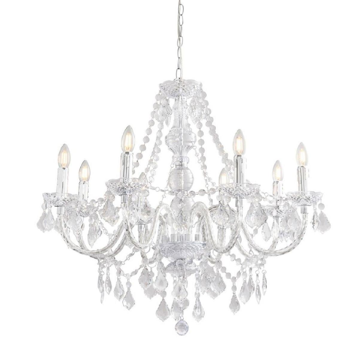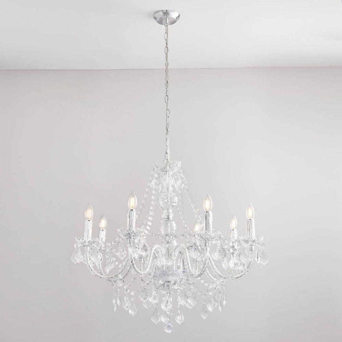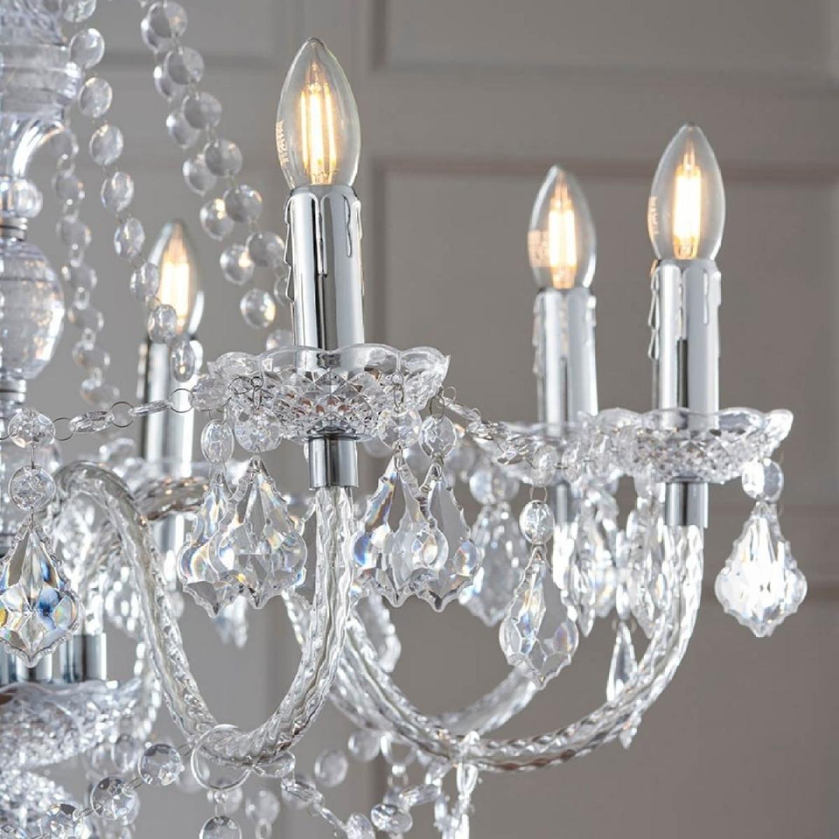 Clarence 8-light chandelier, featuring clear acrylic beading, facets and droplets, as well as chrome-plated metalwork. Make a bold statement with the Clarence 8-light chandelier, a large and opulent lighting centrepiece that exudes elegance. Featuring high-quality clear acrylic beading, facets and droplets, this chandelier beautifully catches and reflects the light, creating a dazzling display. The chrome-plated metalwork adds a contemporary touch, enhancing its sophisticated design. Perfect for grand living spaces, dining rooms or entryways, the Clarence chandelier combines timeless glamour with modern flair. Its eight-light design provides brilliant illumination, making it as functional as it is stunning. Clarence 8-light chandelier, featuring clear acrylic beading, facets and droplets, as well as chrome-plated metalwork. Make a bold statement with the Clarence 8-light chandelier, a large and opulent lighting centrepiece that exudes elegance. Featuring high-quality clear acrylic beading, facets and droplets, this chandelier beautifully catches and reflects the light, creating a dazzling display. The chrome-plated metalwork adds a contemporary touch, enhancing its sophisticated design. Perfect for grand living spaces, dining rooms or entryways, the Clarence chandelier combines timeless glamour with modern flair. Its eight-light design provides brilliant illumination, making it as functional as it is stunning.