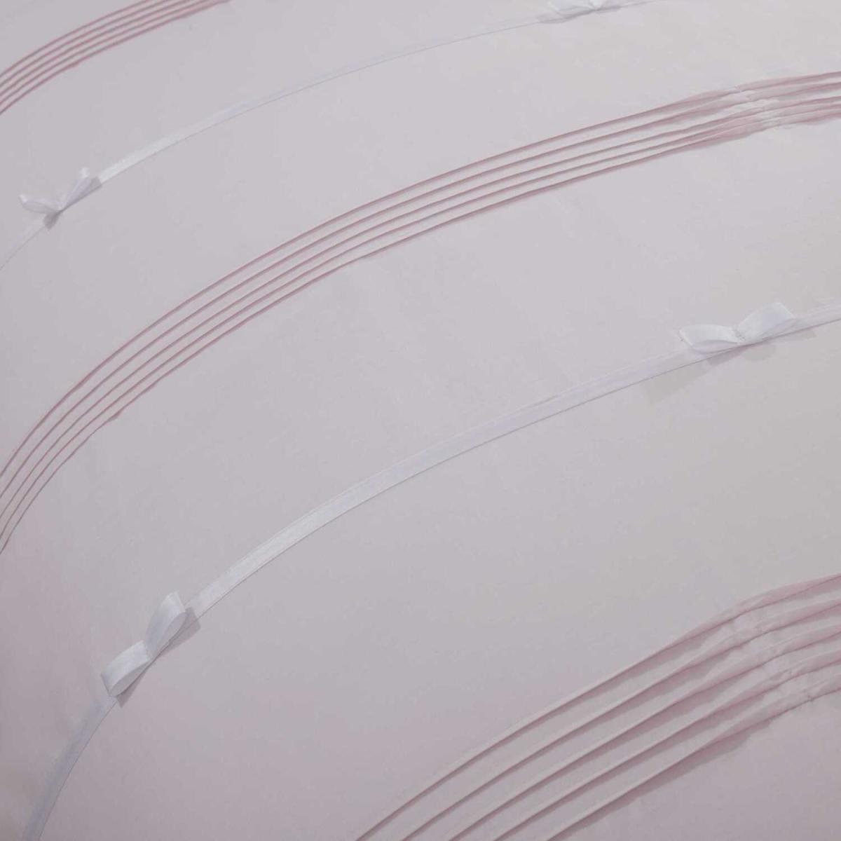 Clarissa duvet set is a contemporary and opulent design. Pintuck detailing alongside contrasting ribbon in charming little bows.