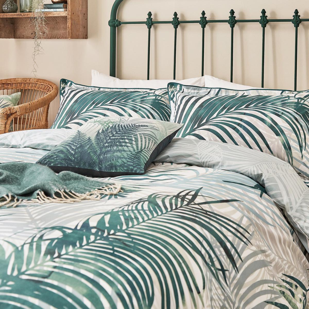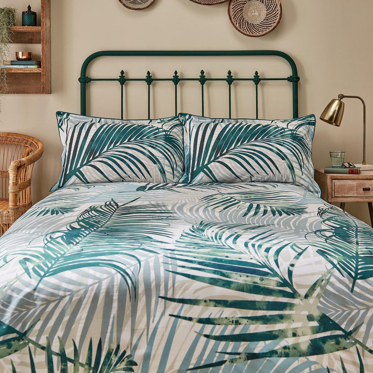 Clarissa Palm Leaf Forest Green 100% Cotton Duvet Cover Set Forest (Green)