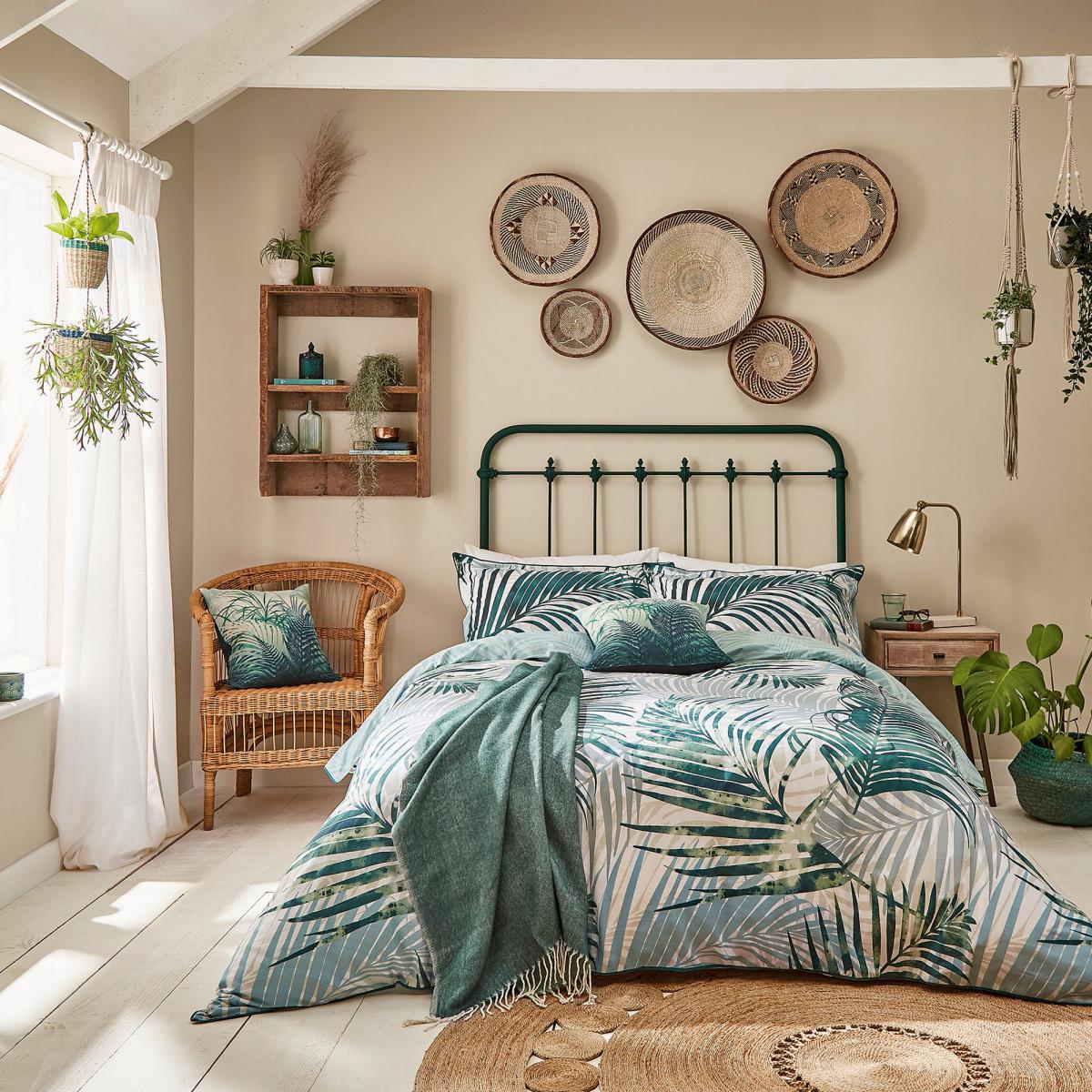 I love the Clarissa Palm Leaf Forest Green duvet set for its fresh, nature-inspired vibe that works beautifully in both modern and bohemian interiors. The deep green hue adds a calming touch and pairs well with neutral tones or accent colours like blush and beige. It's versatile enough to slot into bedrooms with botanical themes, rustic decor, or even contemporary minimalism. Practical styling tips include layering with textured cushions and throws, perhaps in complementary shades like soft cream or earthy tones, to create a cosy yet stylish look. Plus, its 100% cotton fabric ensures comfort and breathability, making it a great choice for all year round.